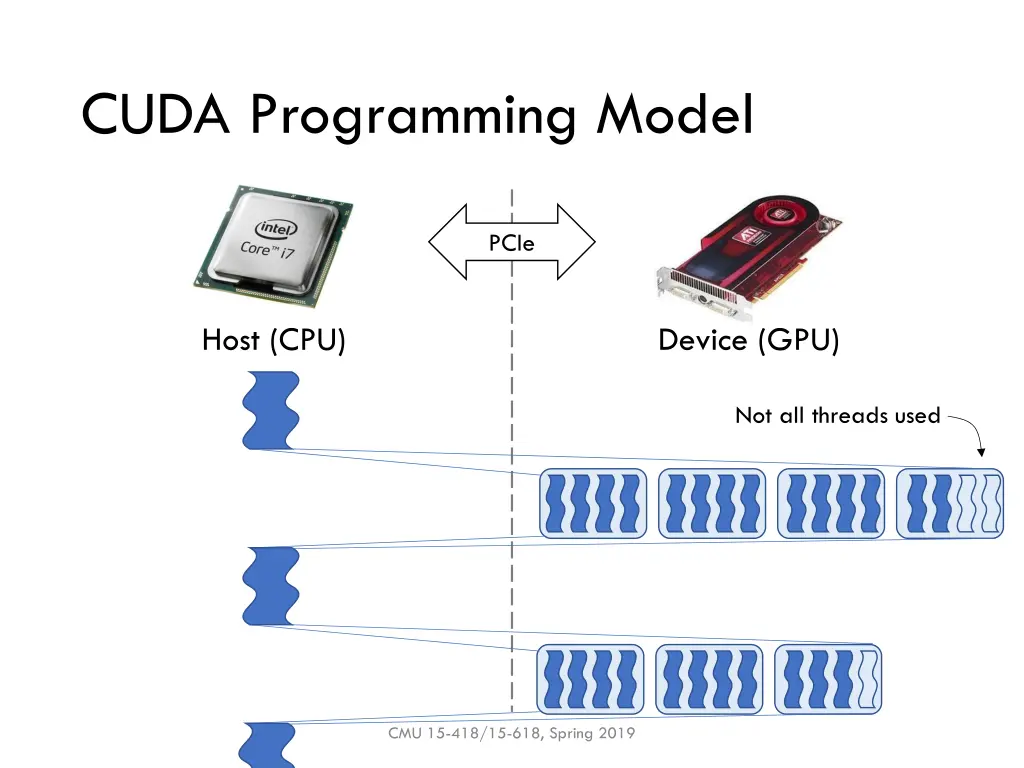 CUDA Programming Model PCIe Host (CPU) Device (GPU) Not all threads used CMU 15-418/15-618, Spring 2019