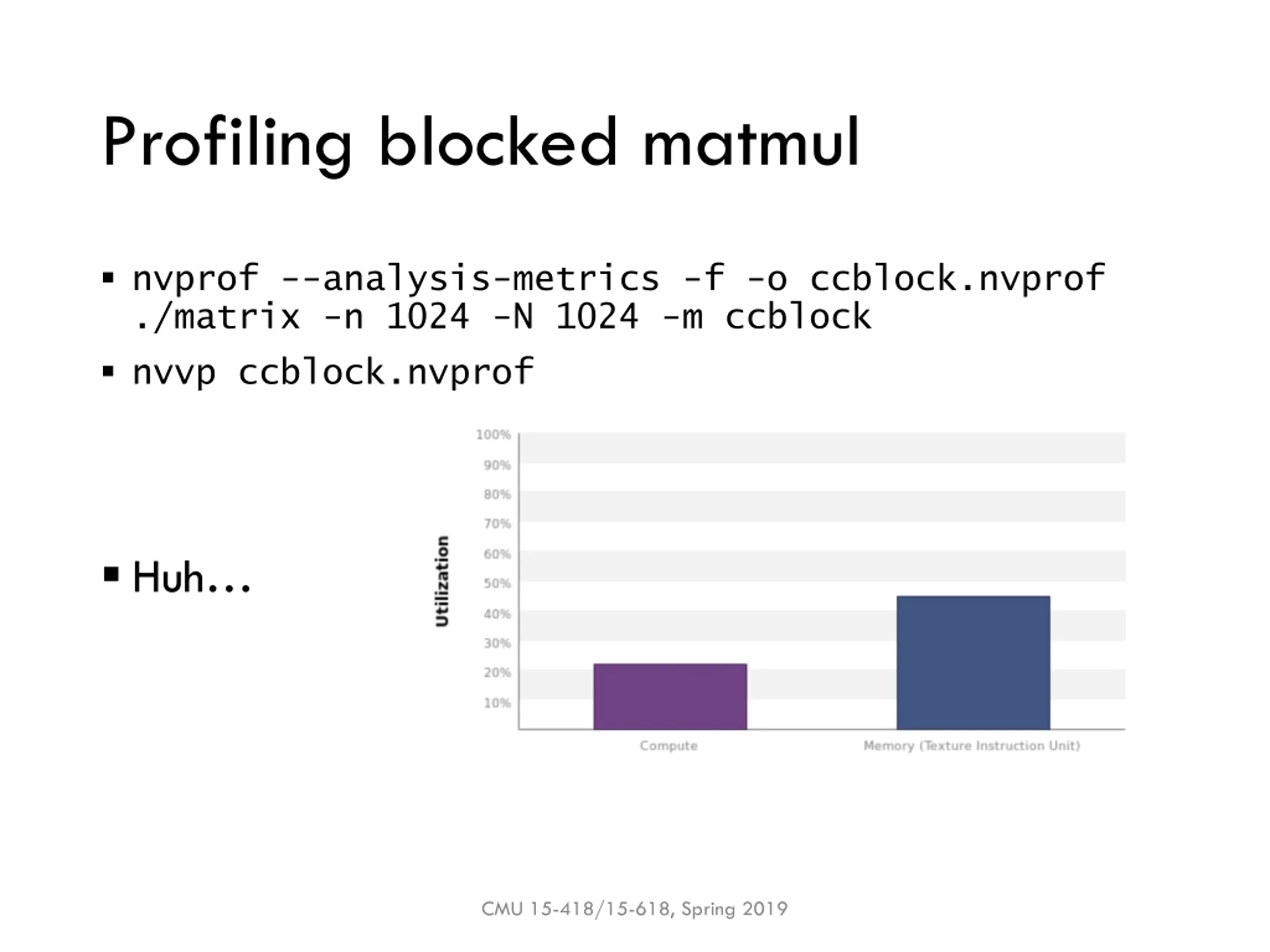 nvprof/nvvp Profiling Results matmul is memory bound! CMU 15-418/15-618, Spring 2019