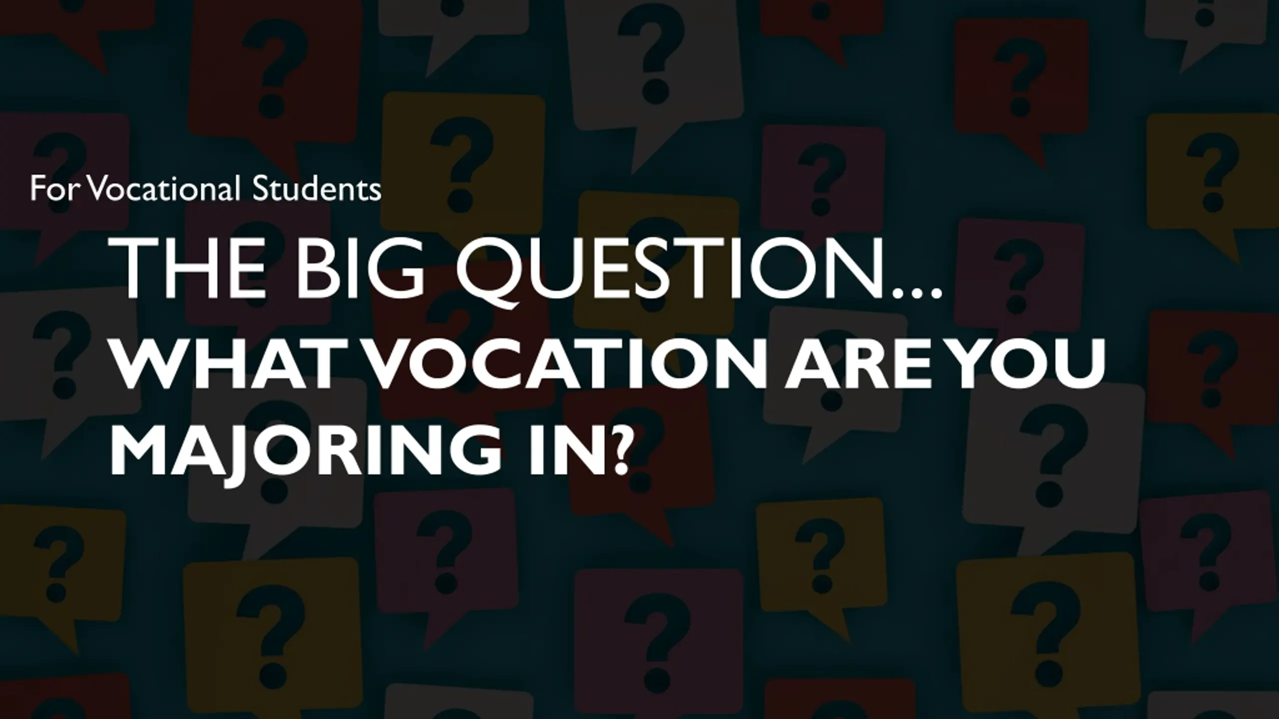 For Vocational Students THE BIG QUESTION... WHAT VOCATION ARE YOU MAJORING IN?