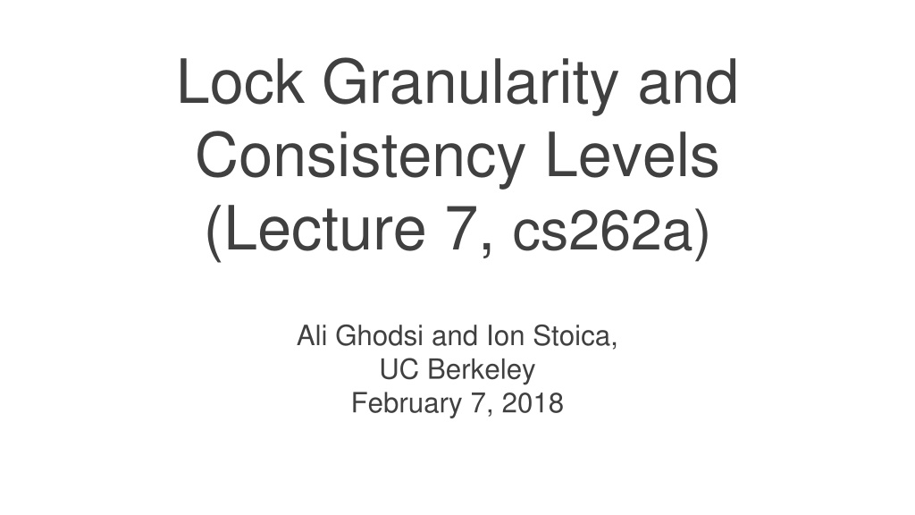 Lock Granularity and Consistency Levels (Lecture 7, cs262a) Ali Ghodsi and Ion Stoica, UC Berkeley February 7, 2018