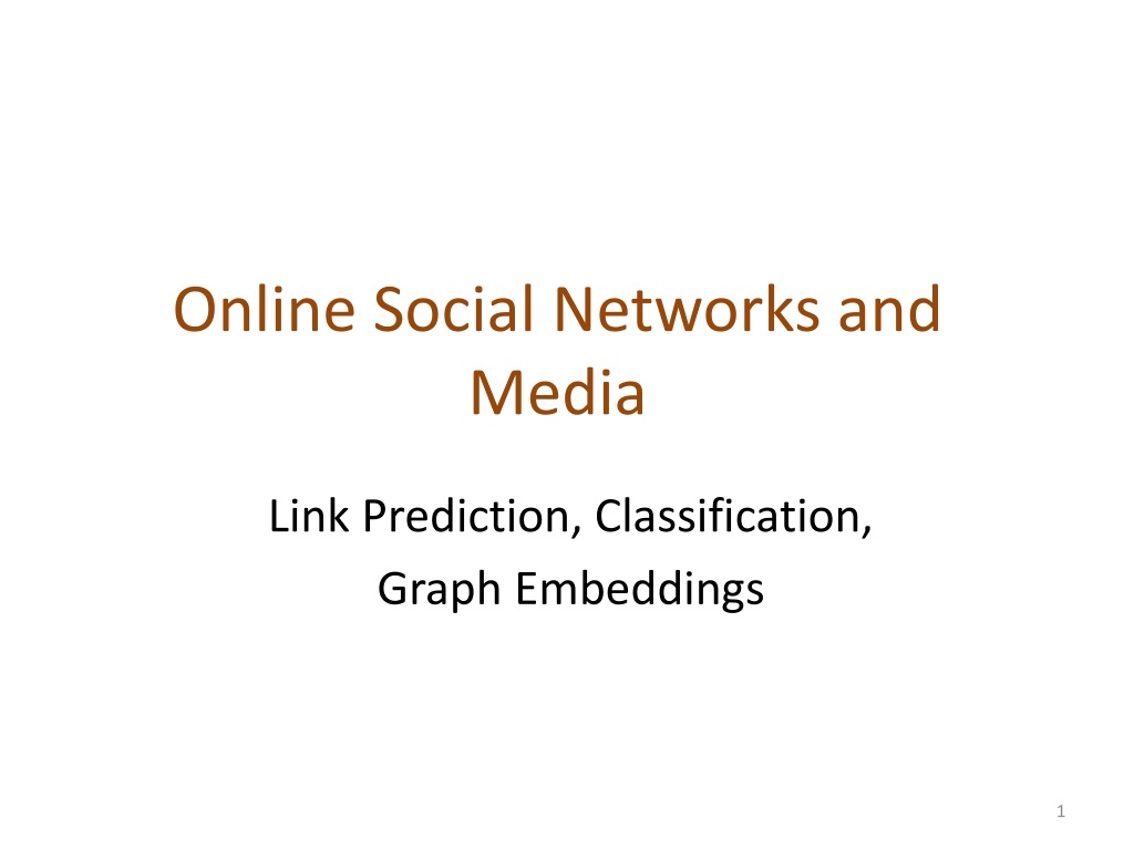 Online Social Networks and Media Link Prediction, Classification, Graph Embeddings 1