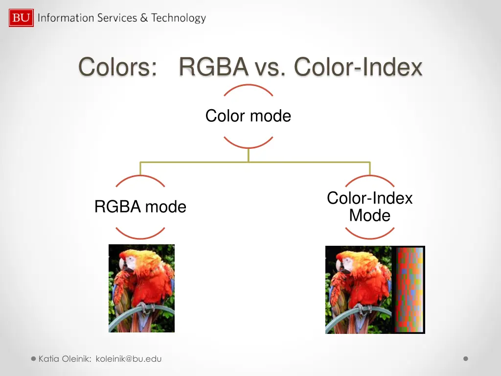 Colors: RGBA vs. Color-Index Color mode Color-Index Mode RGBA mode Katia Oleinik: koleinik@bu.edu