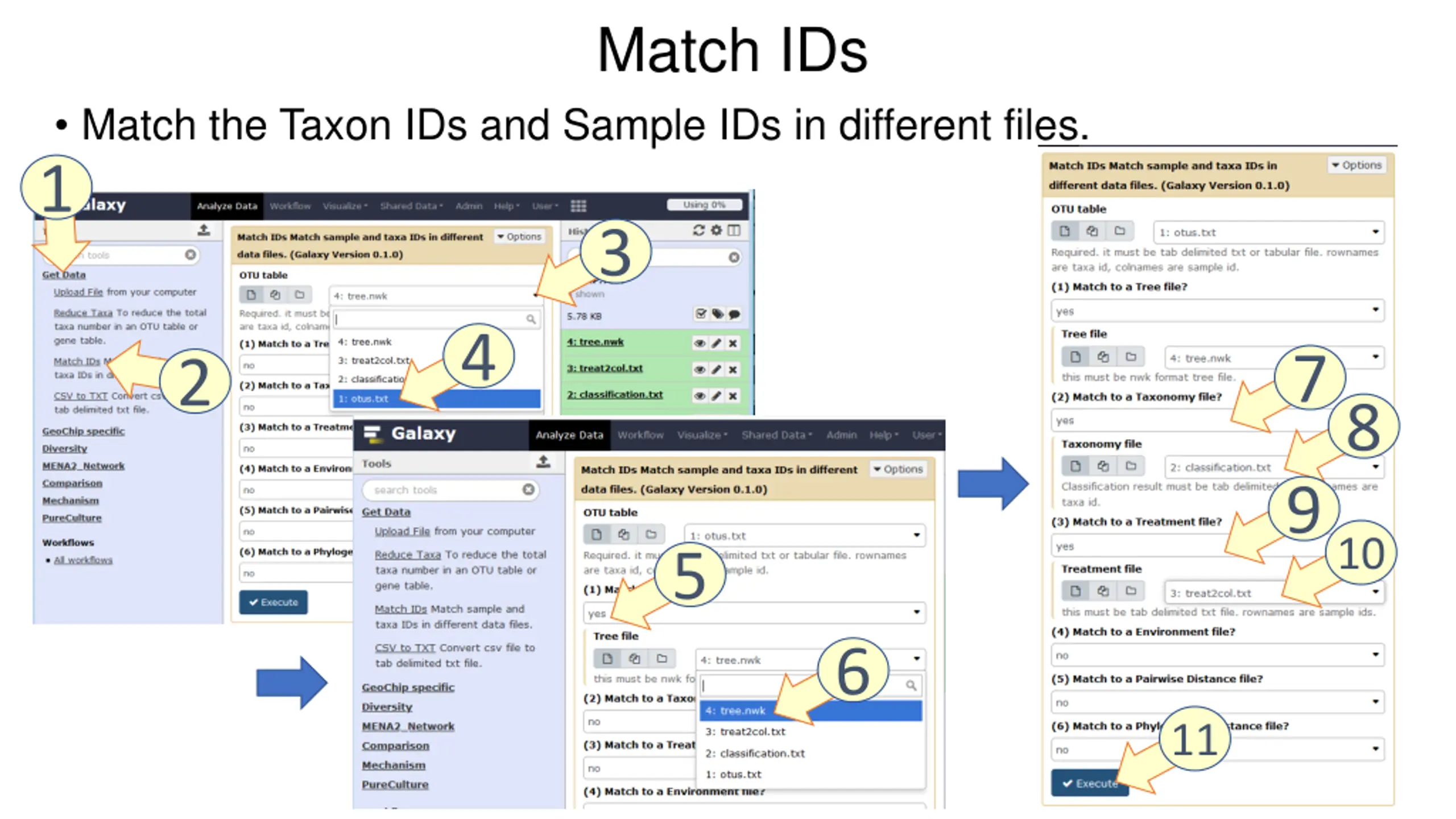 Match IDs Match the Taxon IDs and Sample IDs in different files. 1 3 4 78 910 2 5 6 11