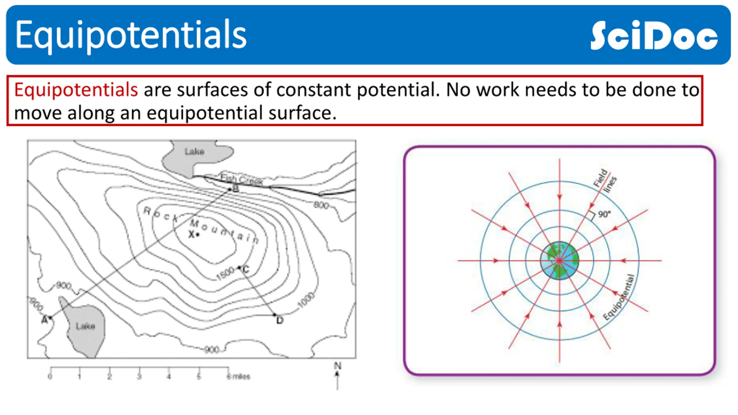 SciDoc Equipotentials Equipotentials Equipotentials are surfaces of constant potential. No work needs to be done to move along an equipotential surface.