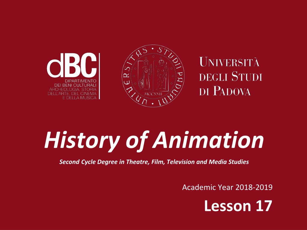 History of Animation Second Cycle Degree in Theatre, Film, Television and Media Studies Academic Year 2018-2019 Lesson 17