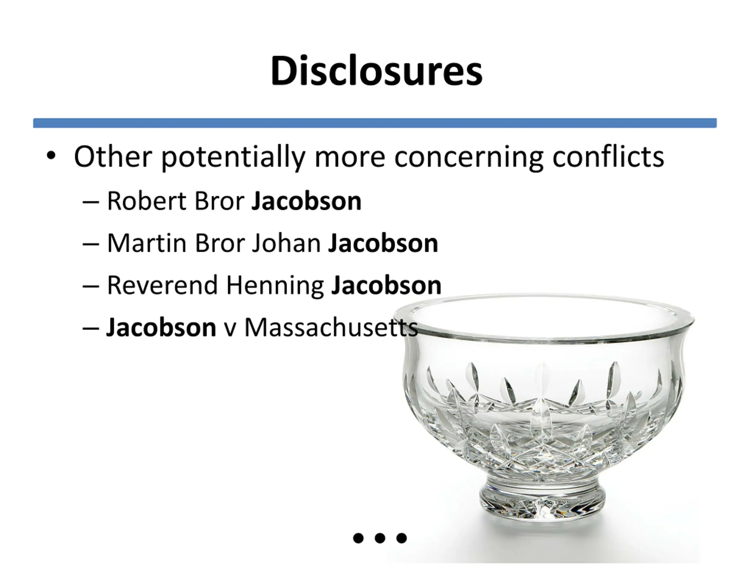 Disclosures Other potentially more concerning conflicts Robert Bror Jacobson Martin Bror Johan Jacobson Reverend Henning Jacobson Jacobson v Massachusetts
