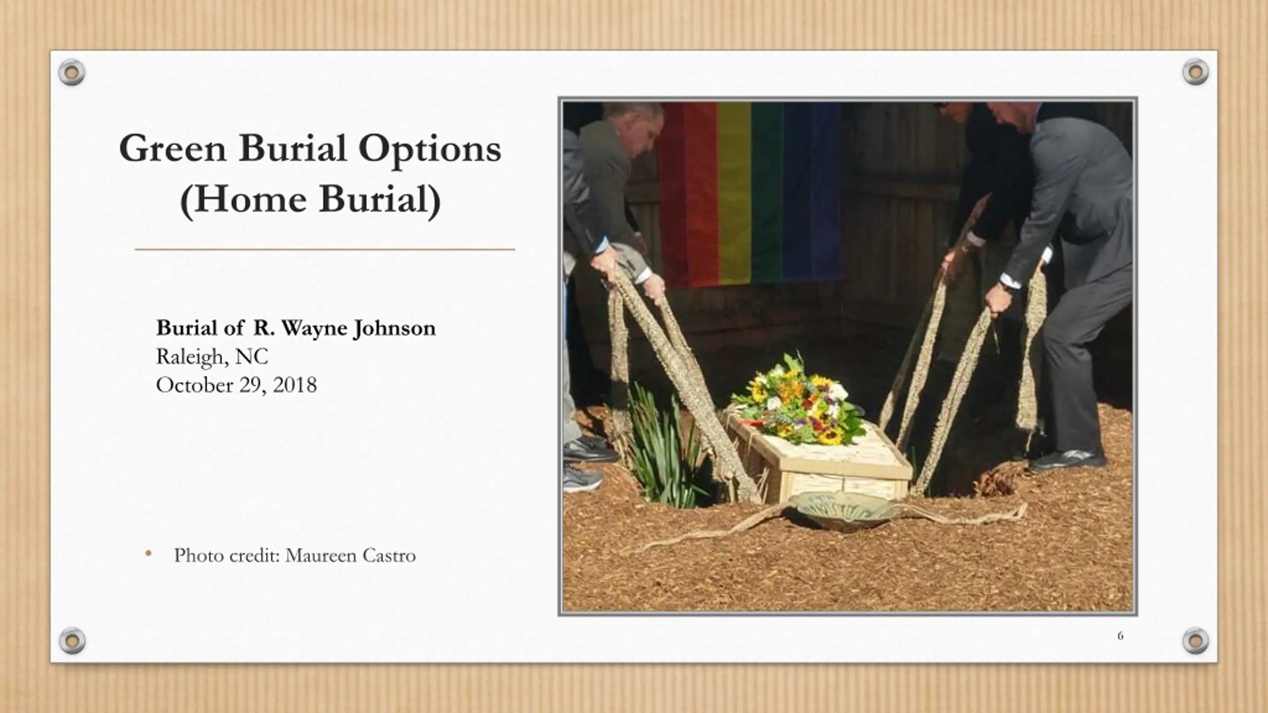 Green Burial Options (Home Burial) Burial of R. Wayne Johnson Raleigh, NC October 29, 2018 Photo credit: Maureen Castro 6