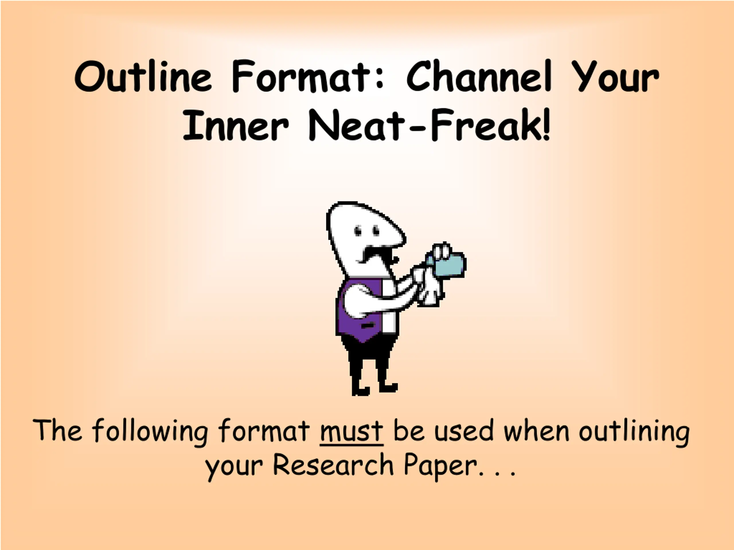 Outline Format: Channel Your Inner Neat-Freak! The following format must be used when outlining your Research Paper. . .