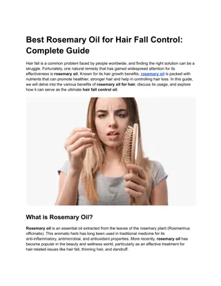 The Ultimate Guide to Rosemary Oil for Hair Growth: Benefits, Uses, and Best Practices Rosemary oil has long been recognized for its diverse health benefits, ranging from medicinal uses to cosmetic applications. In recent years, it has gained popularity for its potential to promote healthy hair growth and reduce hair loss. This guide will explore the various benefits of rosemary oil for hair, how to use it, and why it s becoming an essential part of many hair care routines. We ll also delve into the key considerations for choosing the best rosemary oil for hair growth to ensure you re getting the most out of this natural remedy. What Is Rosemary Oil? Rosemary oil is an essential oil derived from the leaves of the Rosmarinus officinalis plant. Known for its refreshing, herbaceous scent, rosemary oil is rich in antioxidants and has anti-inflammatory, antimicrobial, and stimulating properties that make it a valuable ingredient for promoting scalp and hair health. It has been used for centuries in various cultures for both medicinal and cosmetic purposes. Key Benefits of Rosemary Oil for Hair 1. Promotes Hair Growth