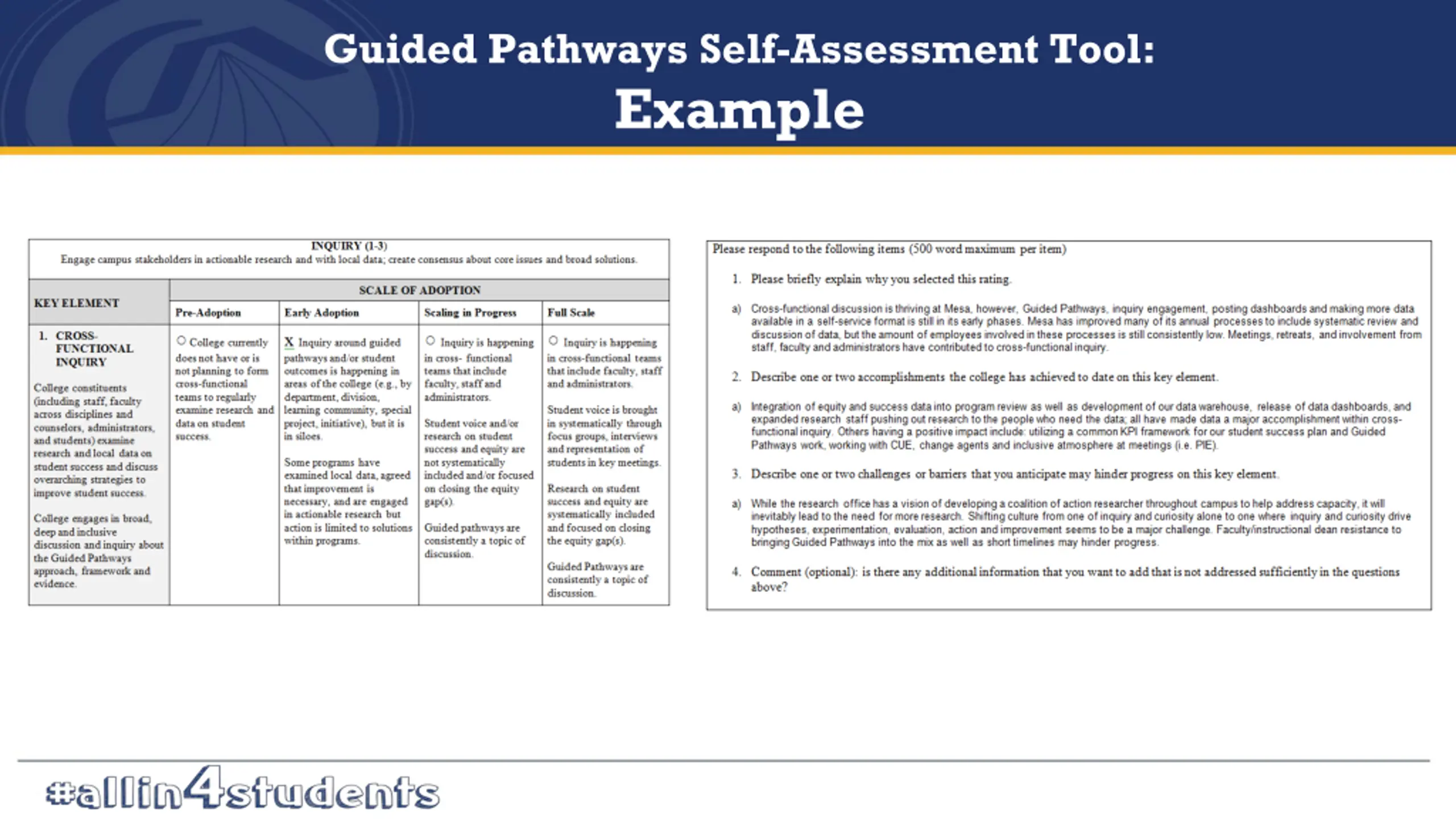 Guided Pathways Depends on US. Guided Pathways is not a one-size-fits-all initiative The enormity and diversity of the California Community Colleges system requires that each college take a customized, self-guided approach. Guided Pathways is an opportunity for our college to set our own goals and determine our best path to success.