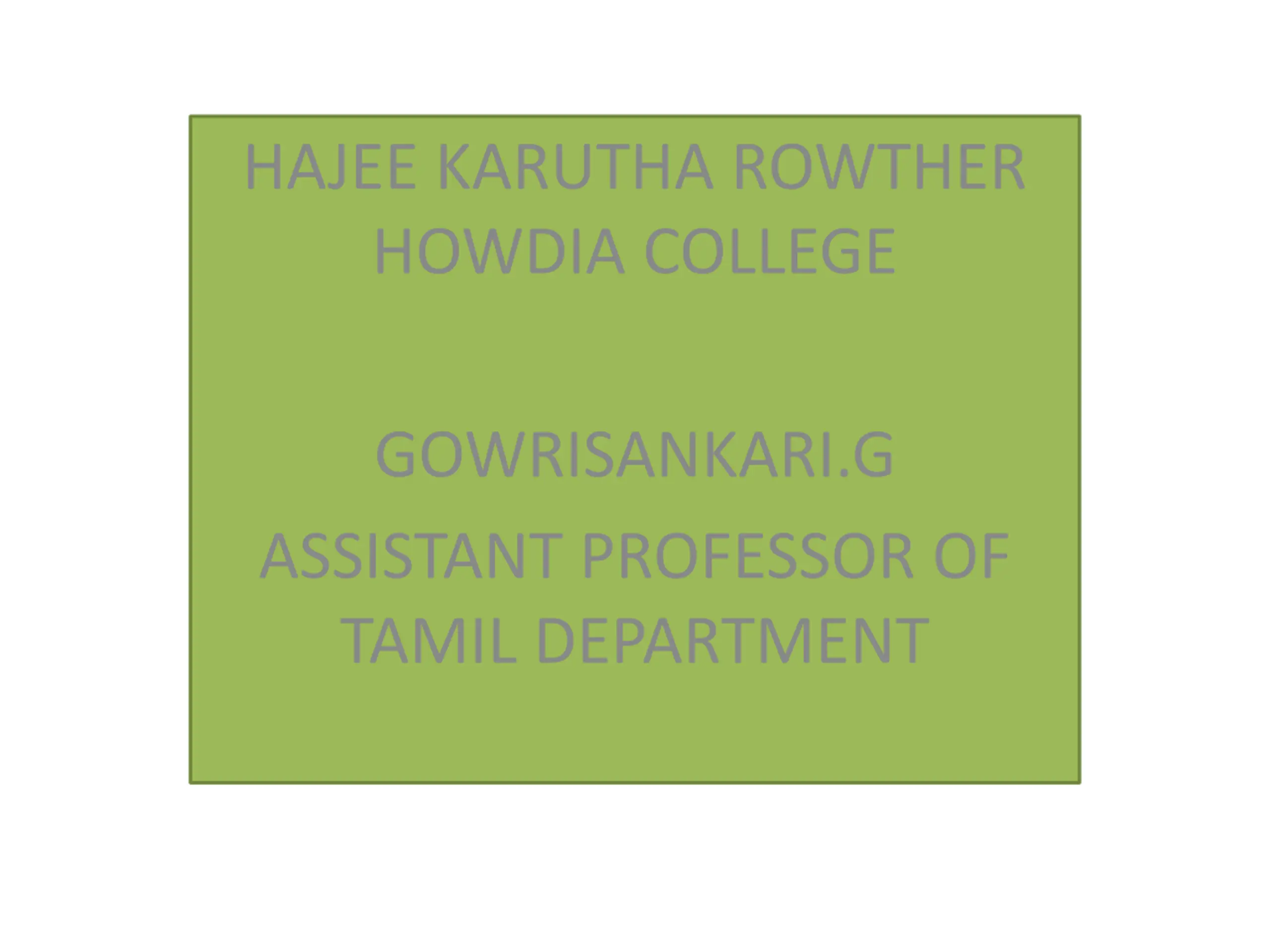 HAJEE KARUTHA ROWTHER HOWDIA COLLEGE f. nfshprq;fhp cjtpg;Nguhrphpah; jkpo;j;Jiw GOWRISANKARI.G ASSISTANT PROFESSOR OF TAMIL DEPARTMENT