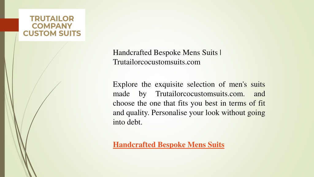 Handcrafted Bespoke Mens Suits | Trutailorcocustomsuits.com Explore the exquisite selection of men's suits made by Trutailorcocustomsuits.com. and choose the one that fits you best in terms of fit and quality. Personalise your look without going into debt. Handcrafted Bespoke Mens Suits