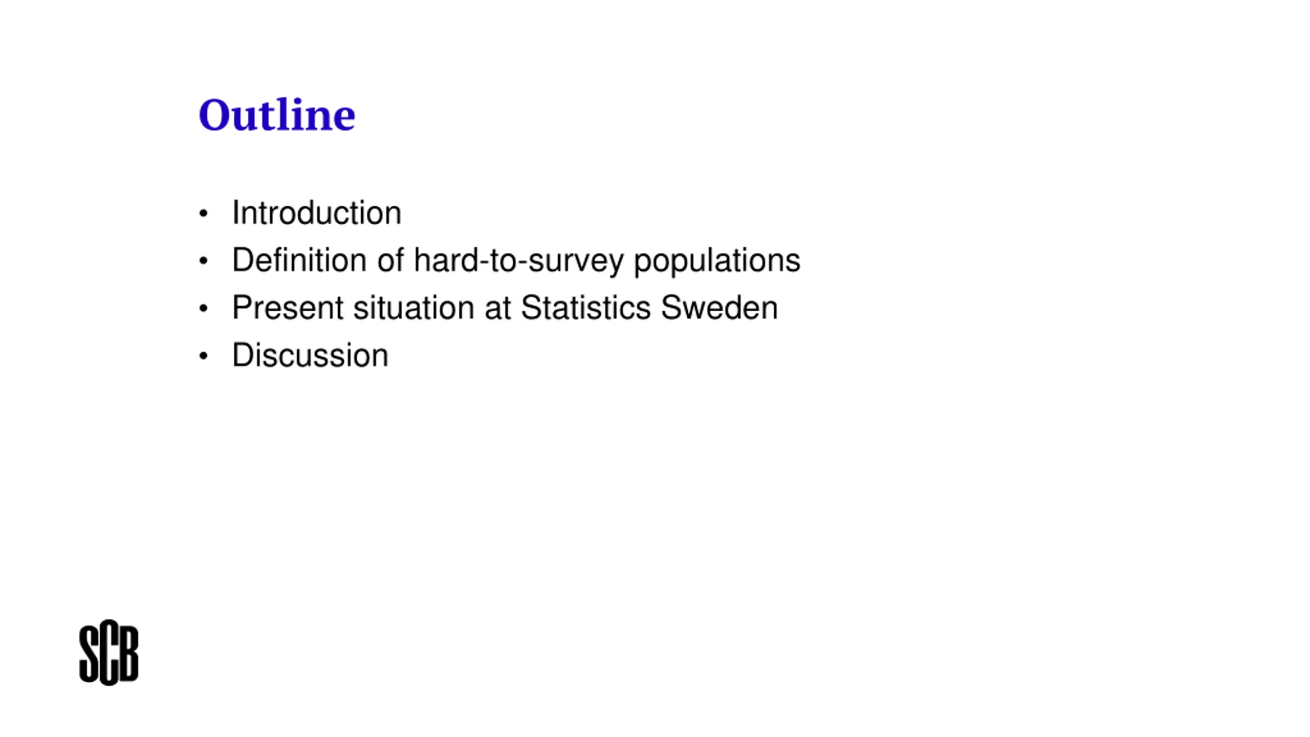 Outline Introduction Definition of hard-to-survey populations Present situation at Statistics Sweden Discussion