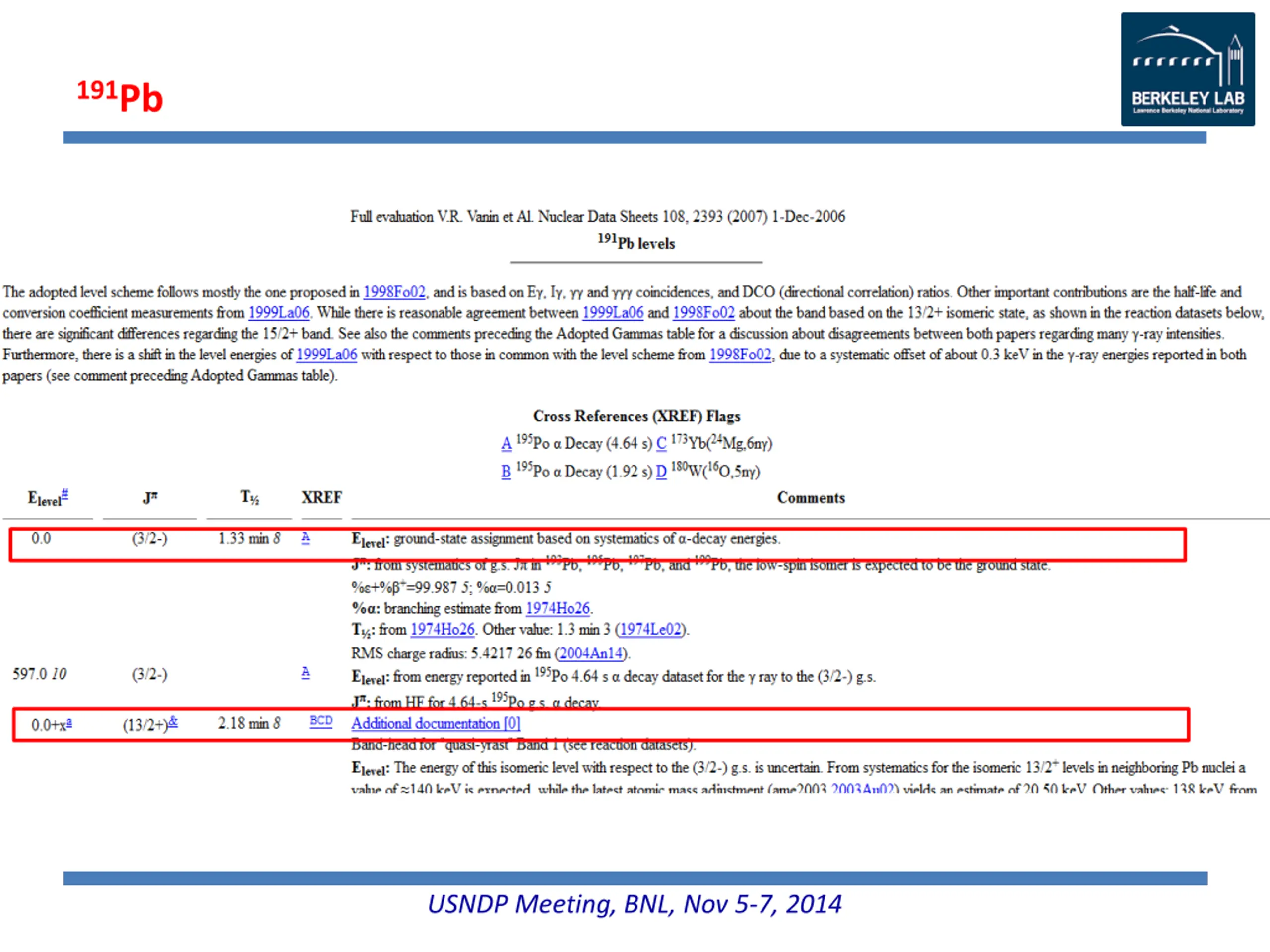 191Pb USNDP Meeting, BNL, Nov 5-7, 2014