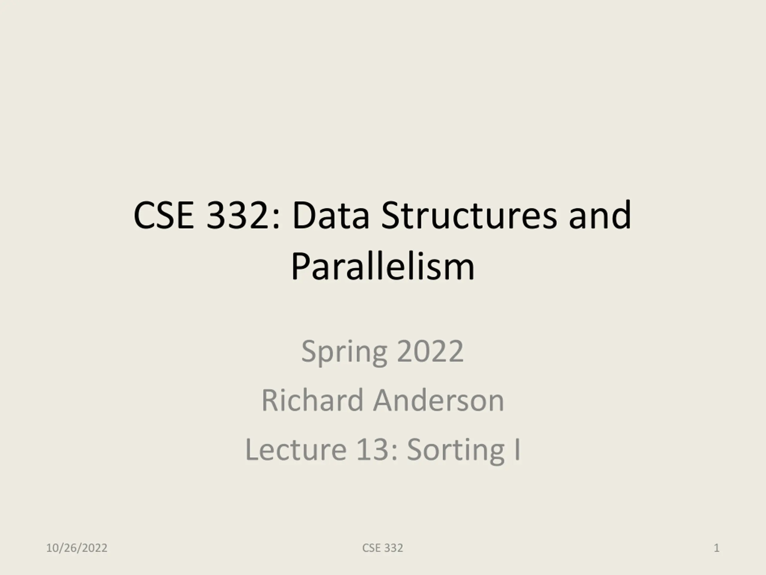 CSE 332: Data Structures and Parallelism Spring 2022 Richard Anderson Lecture 13: Sorting I 10/26/2022 CSE 332 1