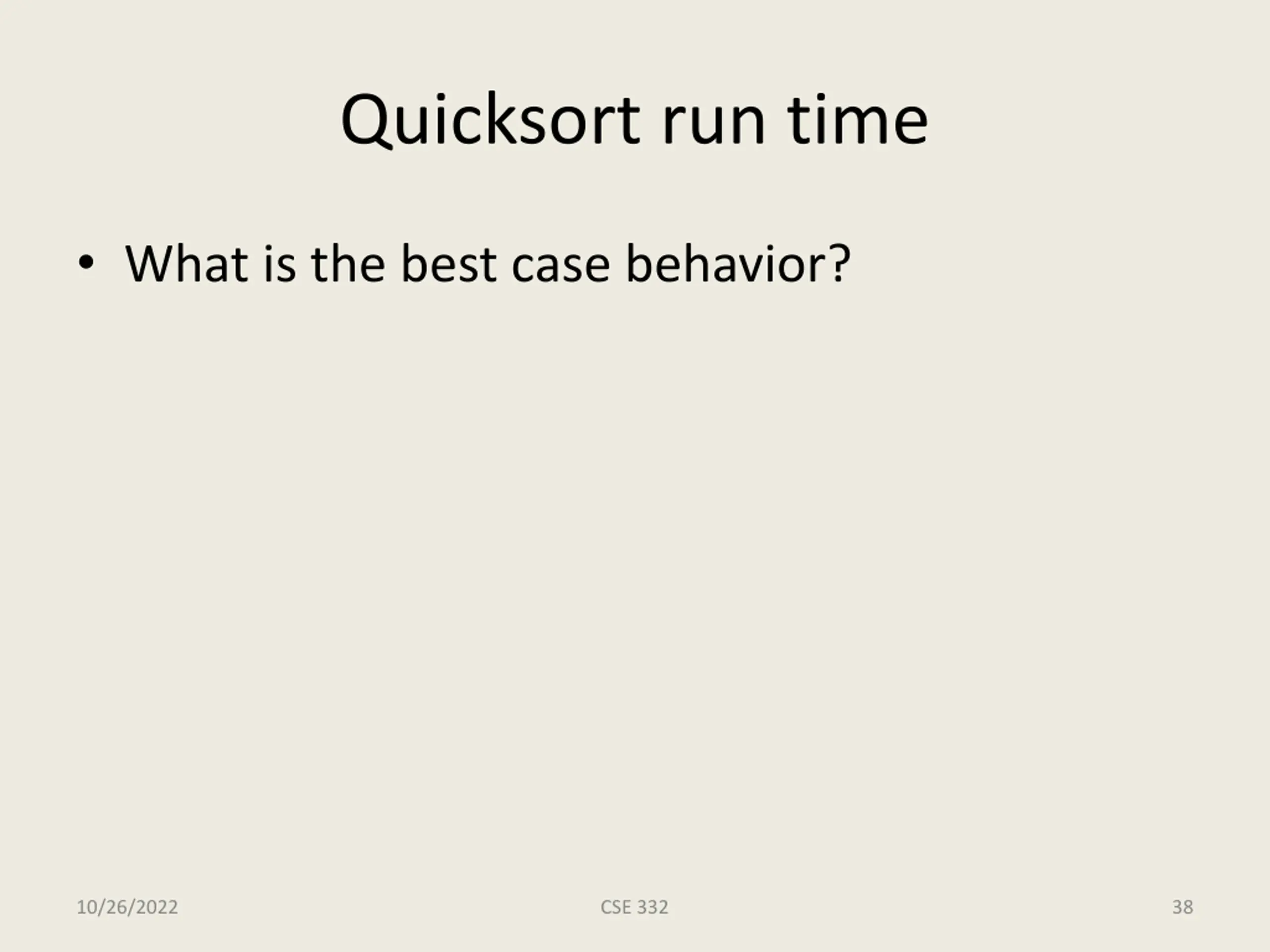 Quicksort run time What is the best case behavior? 10/26/2022 CSE 332 38