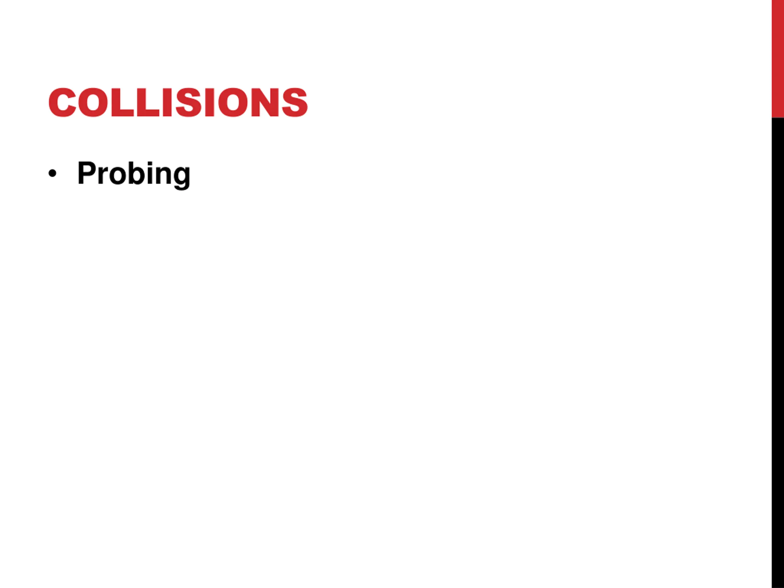 COLLISIONS Probing Linear probing Try the appropriate hash table row first