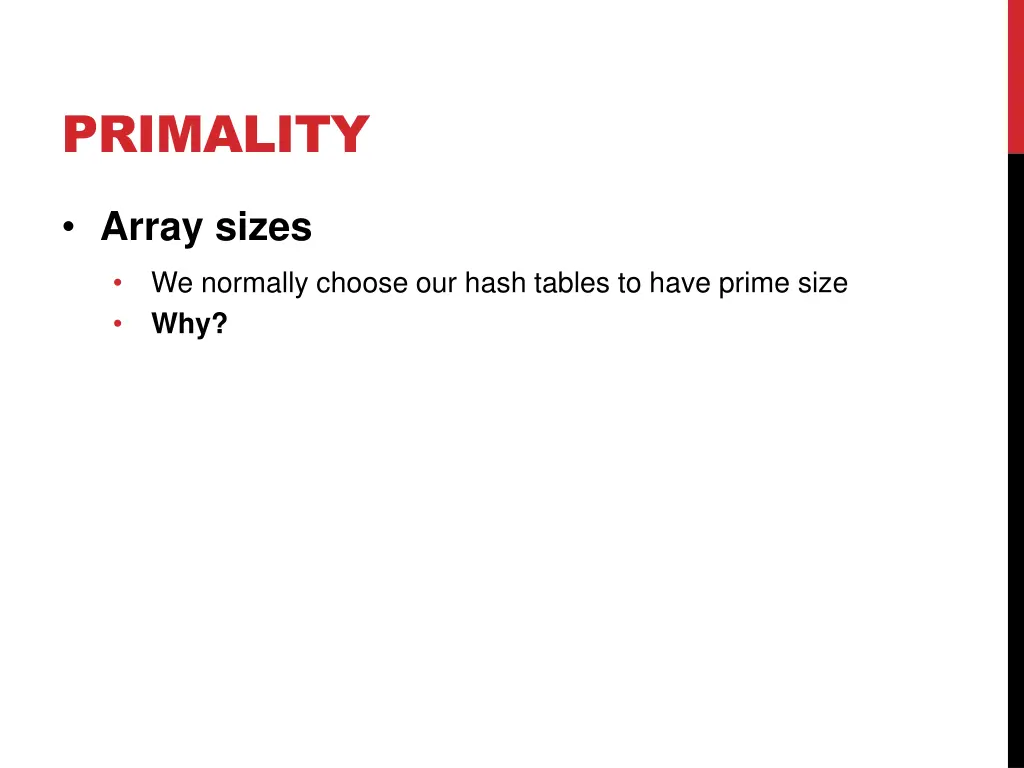 PRIMALITY Array sizes We normally choose our hash tables to have prime size
