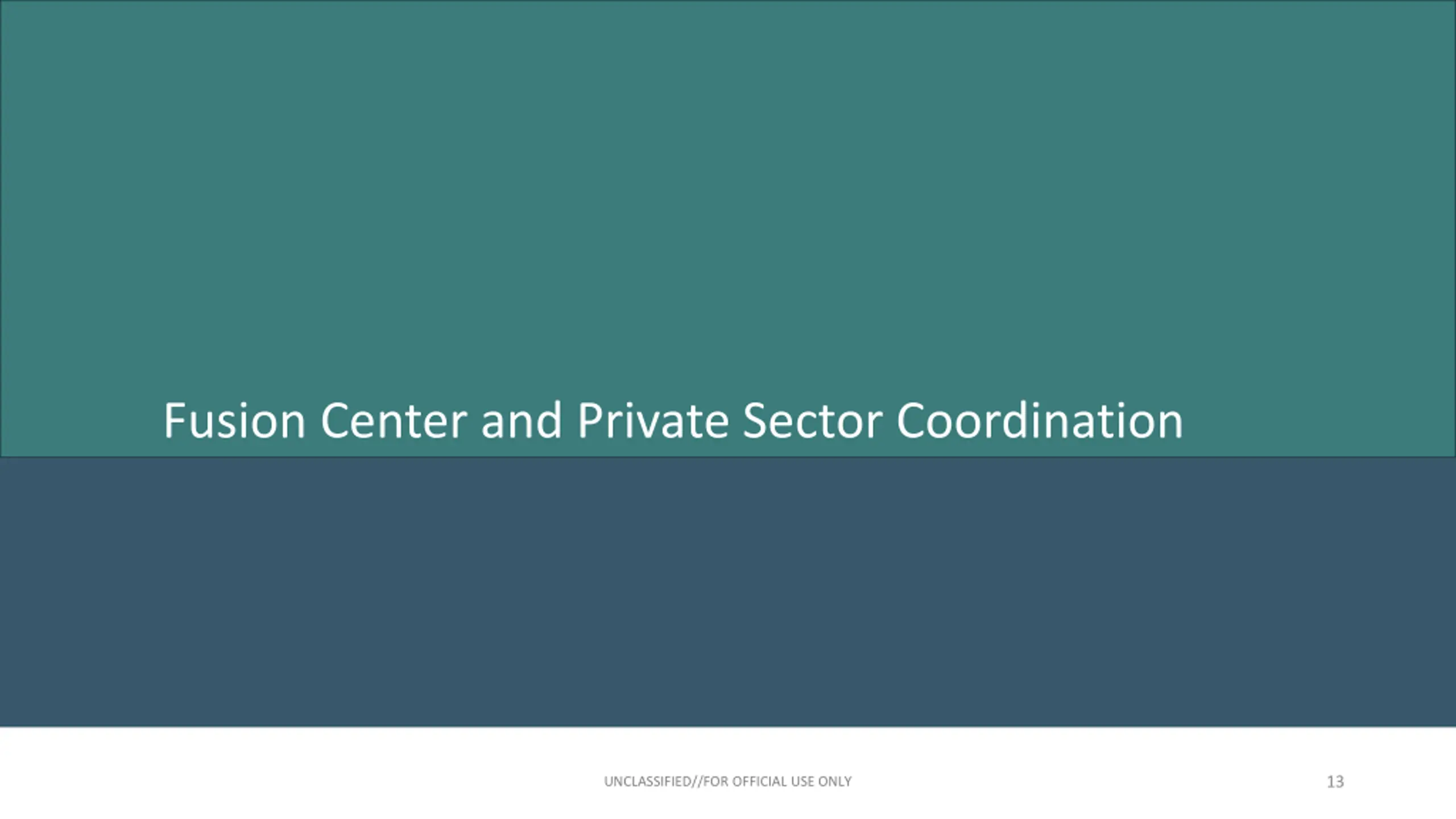 State of Hawaii Office of Homeland Security Fusion Center and Private Sector Coordination 13 UNCLASSIFIED//FOR OFFICIAL USE ONLY