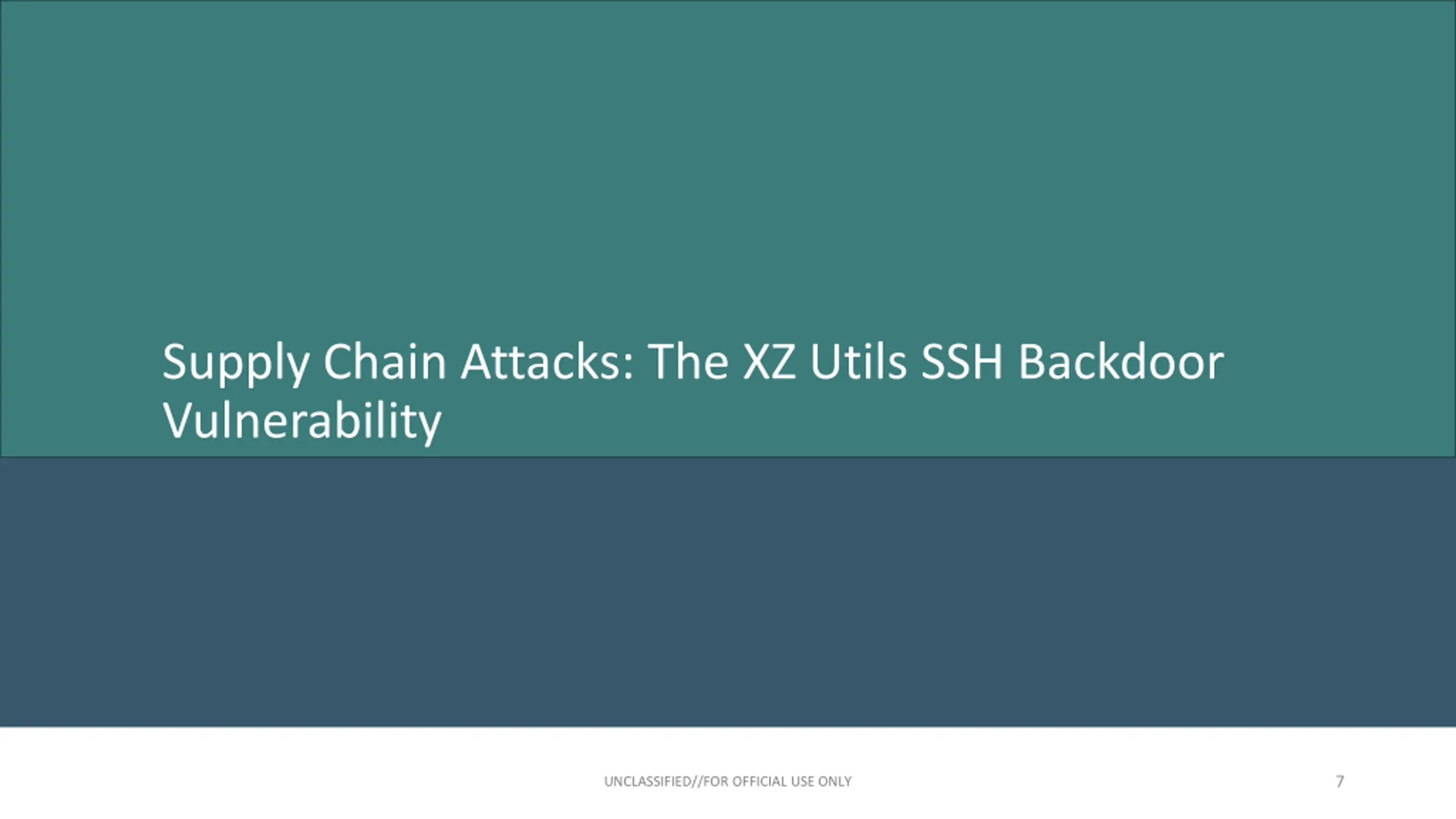 State of Hawaii Office of Homeland Security Supply Chain Attacks: The XZ Utils SSH Backdoor Vulnerability 7 UNCLASSIFIED//FOR OFFICIAL USE ONLY