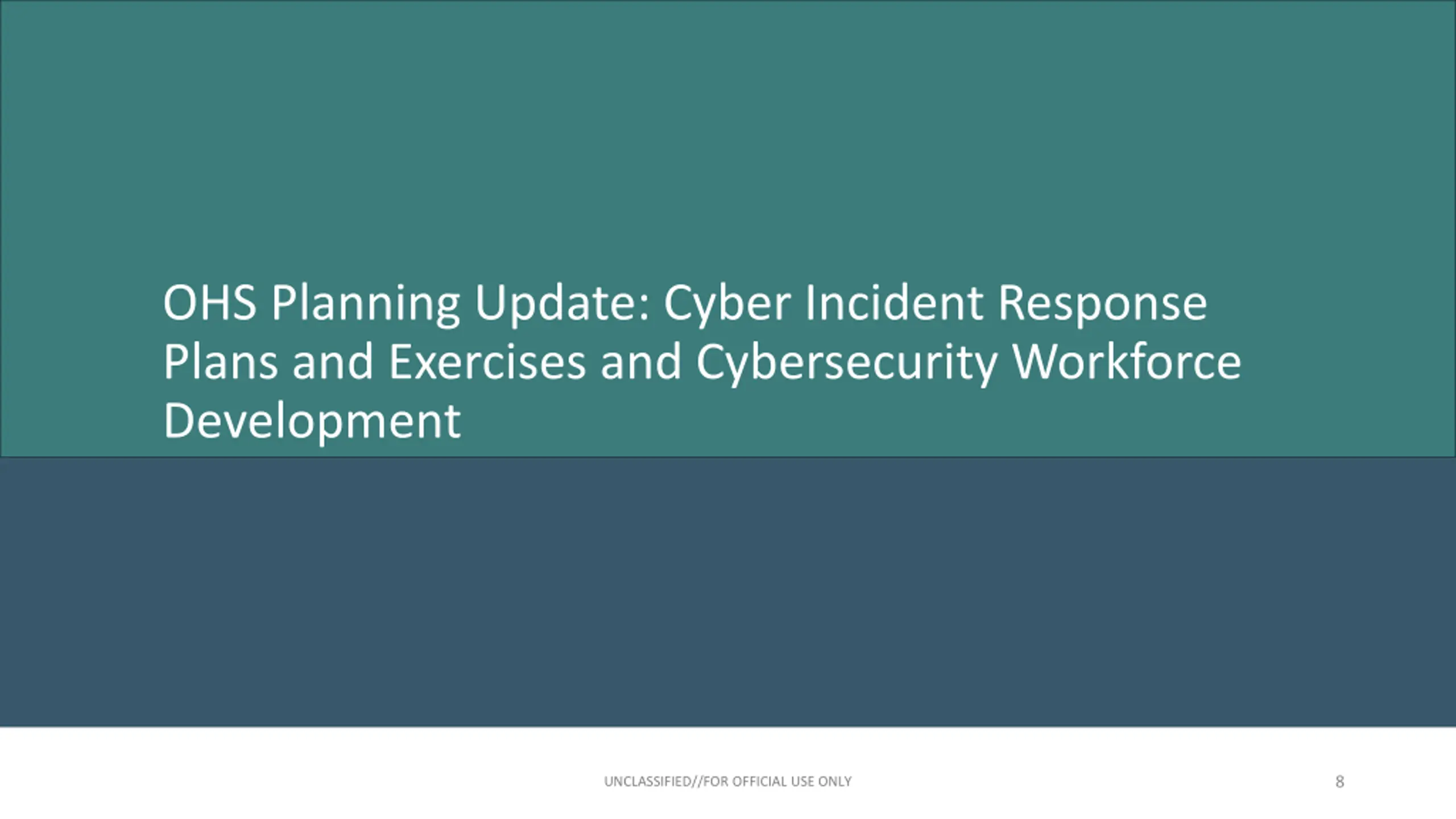 State of Hawaii Office of Homeland Security OHS Planning Update: Cyber Incident Response Plans and Exercises and Cybersecurity Workforce Development 8 UNCLASSIFIED//FOR OFFICIAL USE ONLY