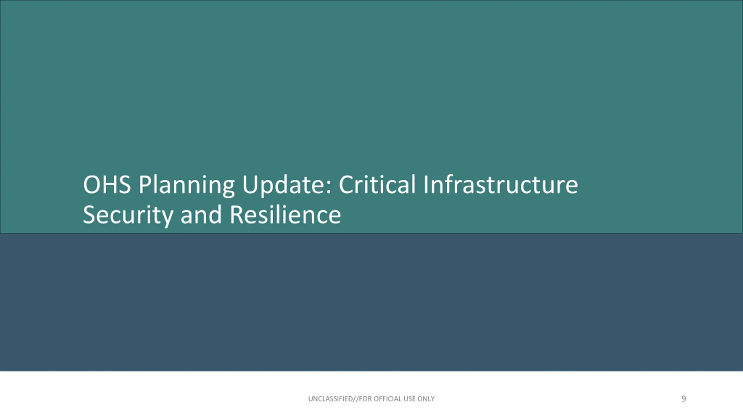 State of Hawaii Office of Homeland Security OHS Planning Update: Critical Infrastructure Security and Resilience 9 UNCLASSIFIED//FOR OFFICIAL USE ONLY