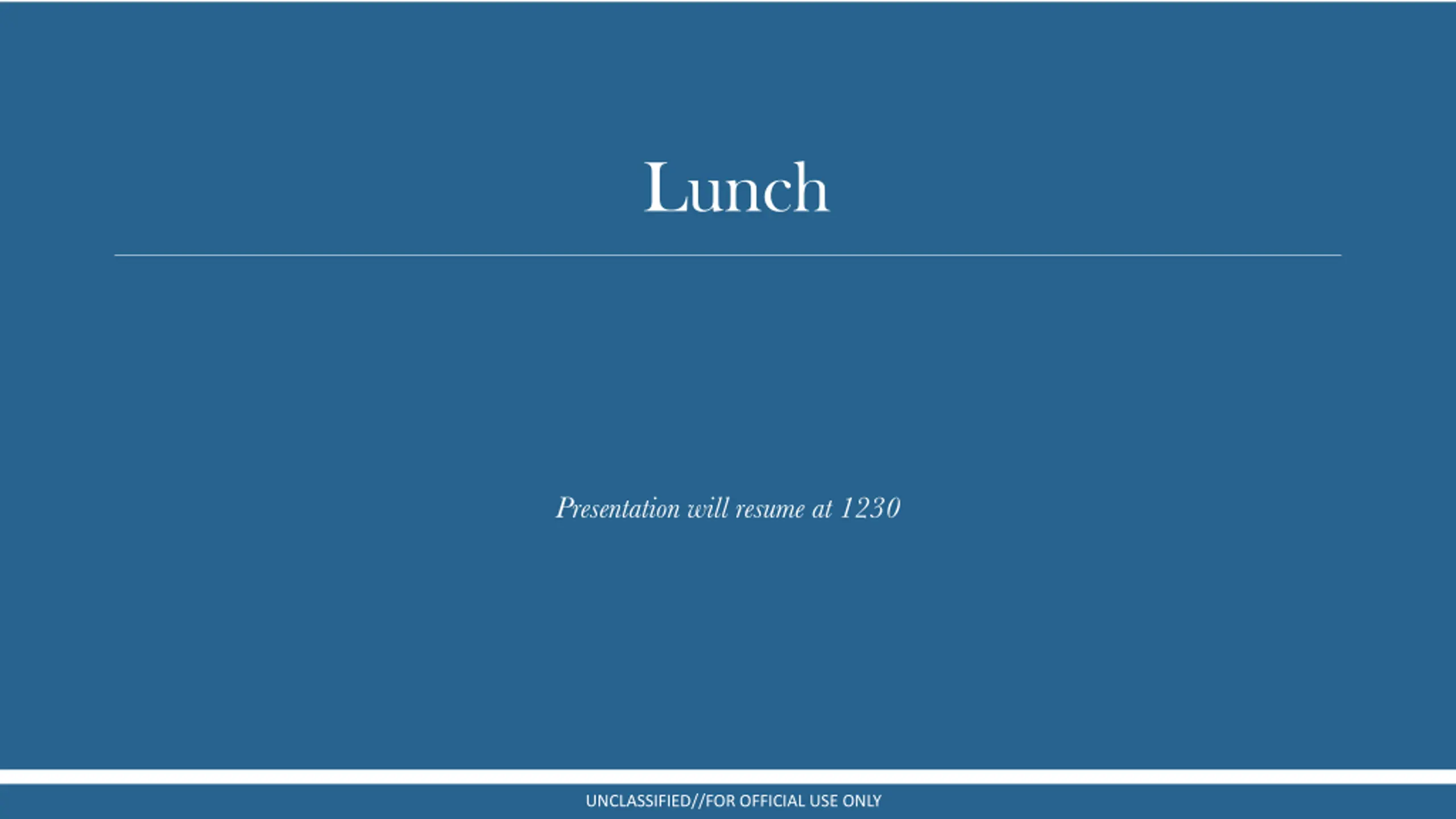 State of Hawaii Office of Homeland Security Lunch Presentation will resume at 1230 UNCLASSIFIED//FOR OFFICIAL USE ONLY