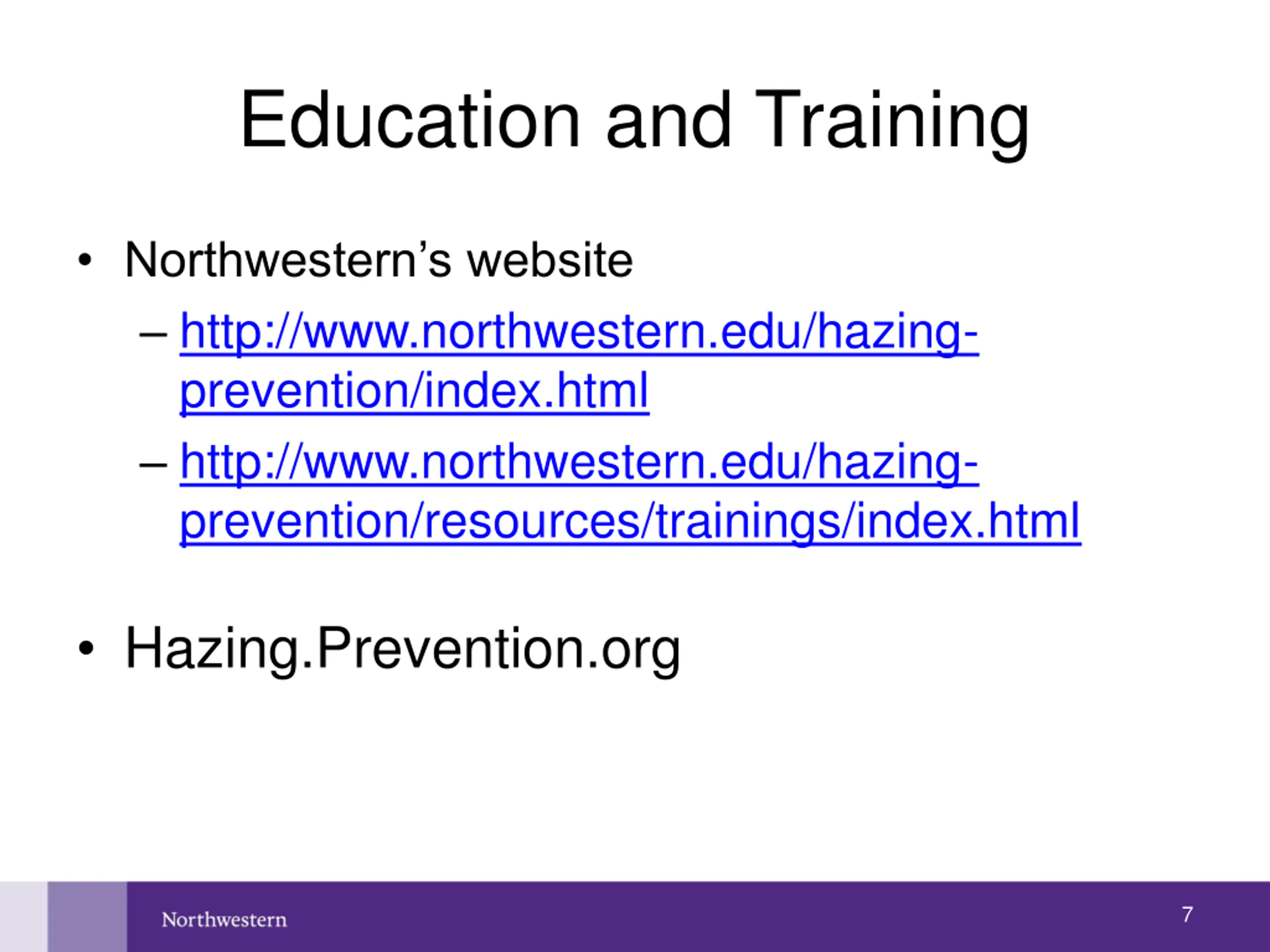 Education and Training Northwestern s website http://www.northwestern.edu/hazing- prevention/index.html http://www.northwestern.edu/hazing- prevention/resources/trainings/index.html Hazing.Prevention.org 7