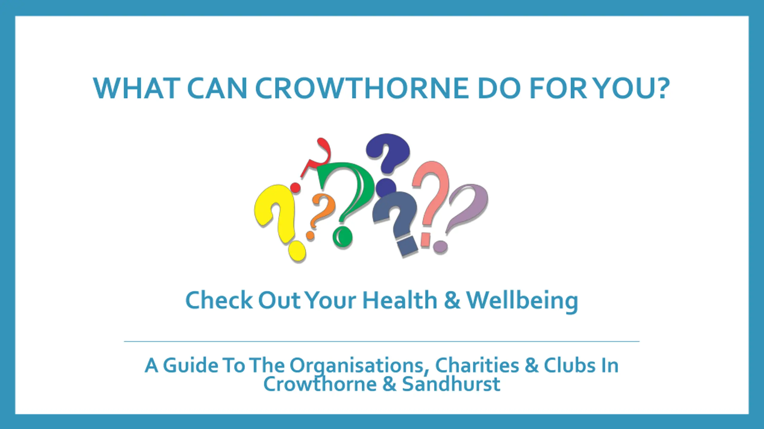 WHAT CAN CROWTHORNE DO FOR YOU? Check Out Your Health & Wellbeing A Guide To The Organisations, Charities & Clubs In Crowthorne & Sandhurst