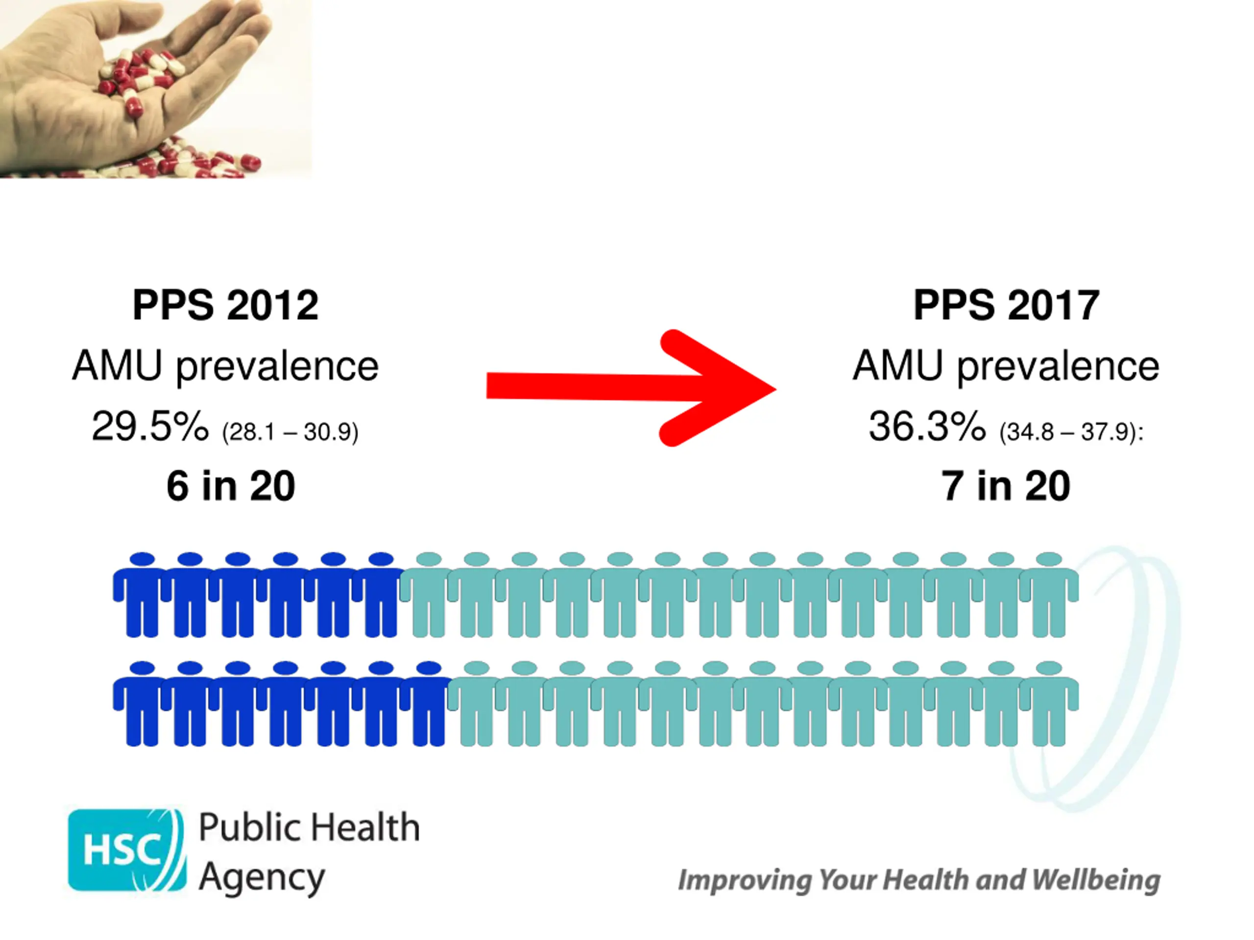 PPS 2012 AMU prevalence 29.5% (28.1 30.9) 6 in 20 PPS 2017 AMU prevalence 36.3% (34.8 37.9): 7 in 20