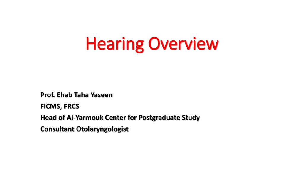 Hearing Overview Hearing Overview Prof. Ehab Taha Yaseen FICMS, FRCS Head of Al-Yarmouk Center for Postgraduate Study Consultant Otolaryngologist