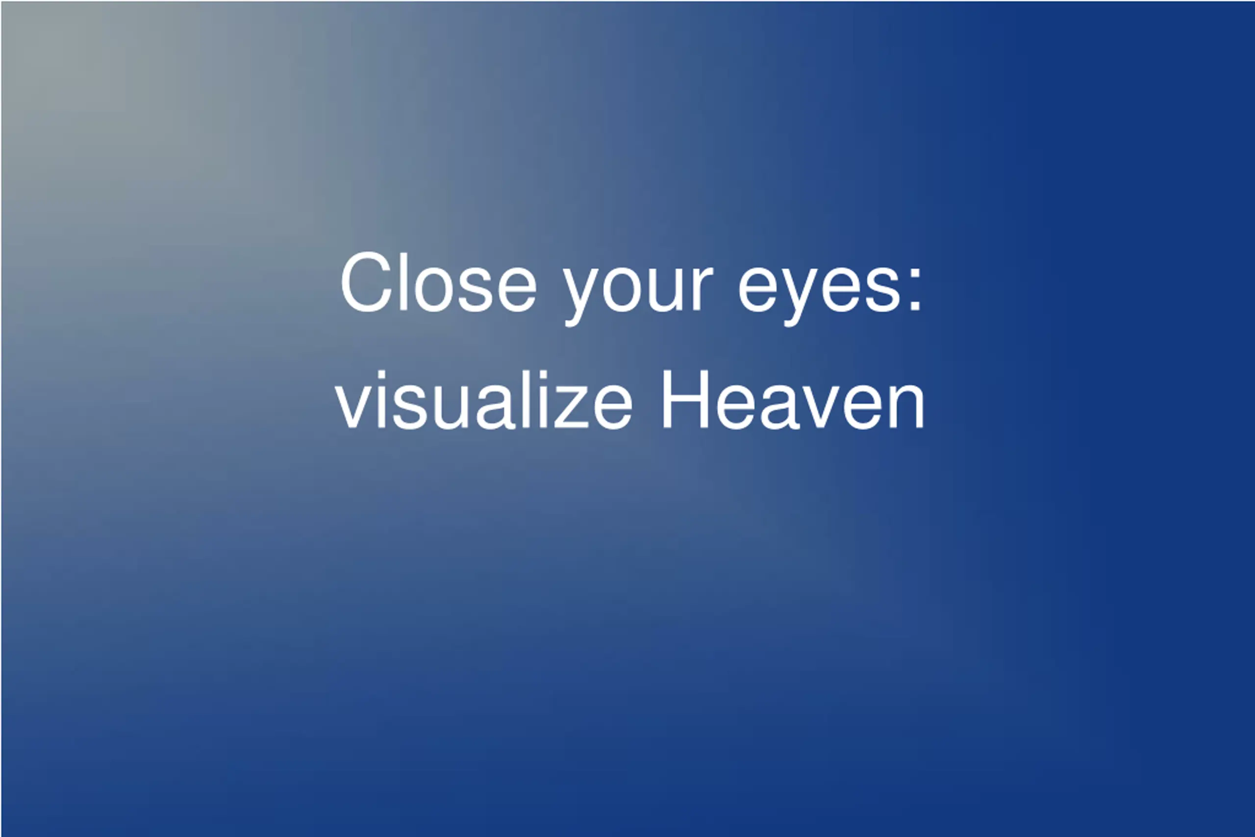 Close your eyes: visualize Heaven