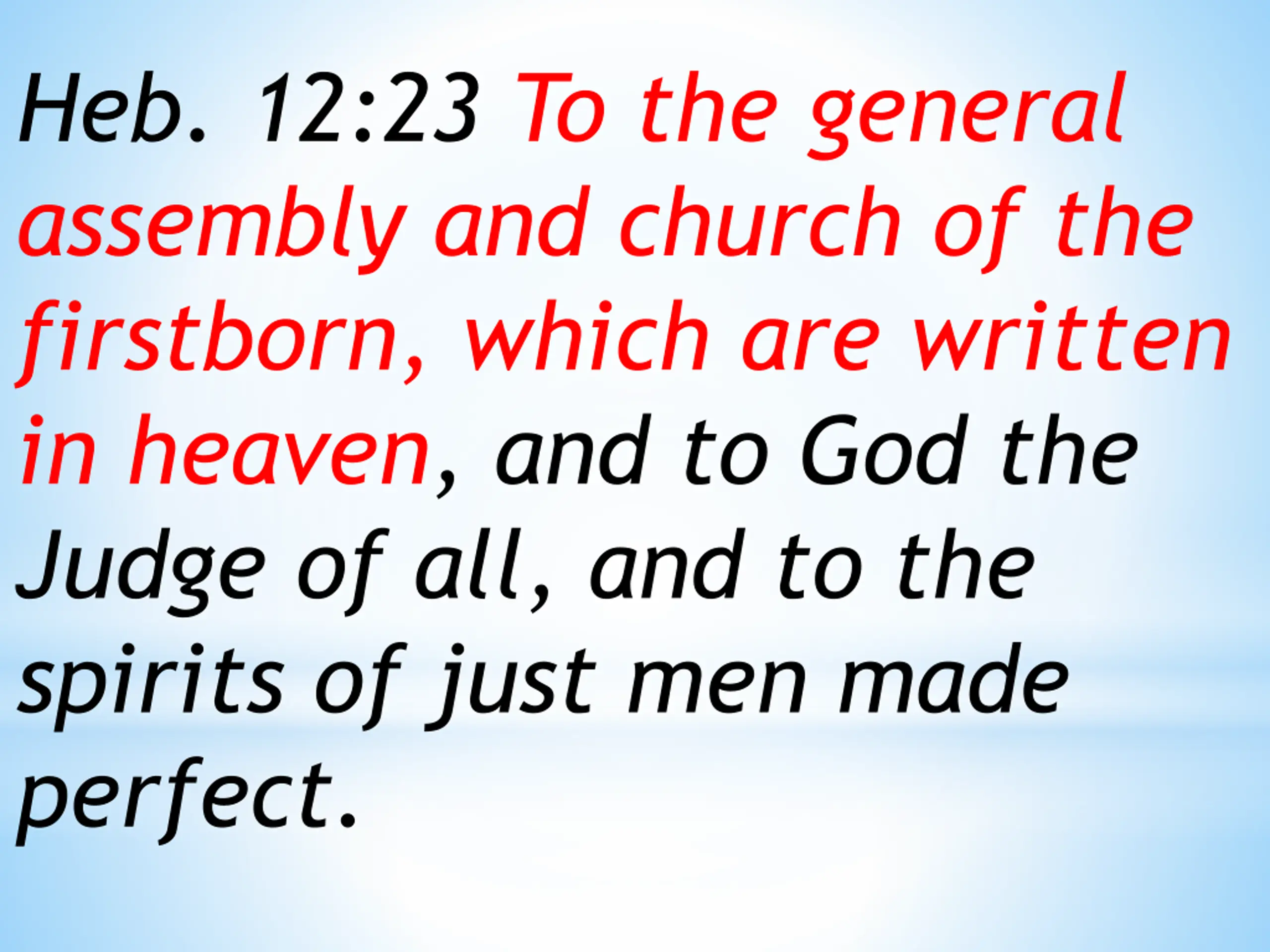 Heb. 12:23 To the general assembly and church of the firstborn, which are written in heaven, and to God the Judge of all, and to the spirits of just men made perfect.