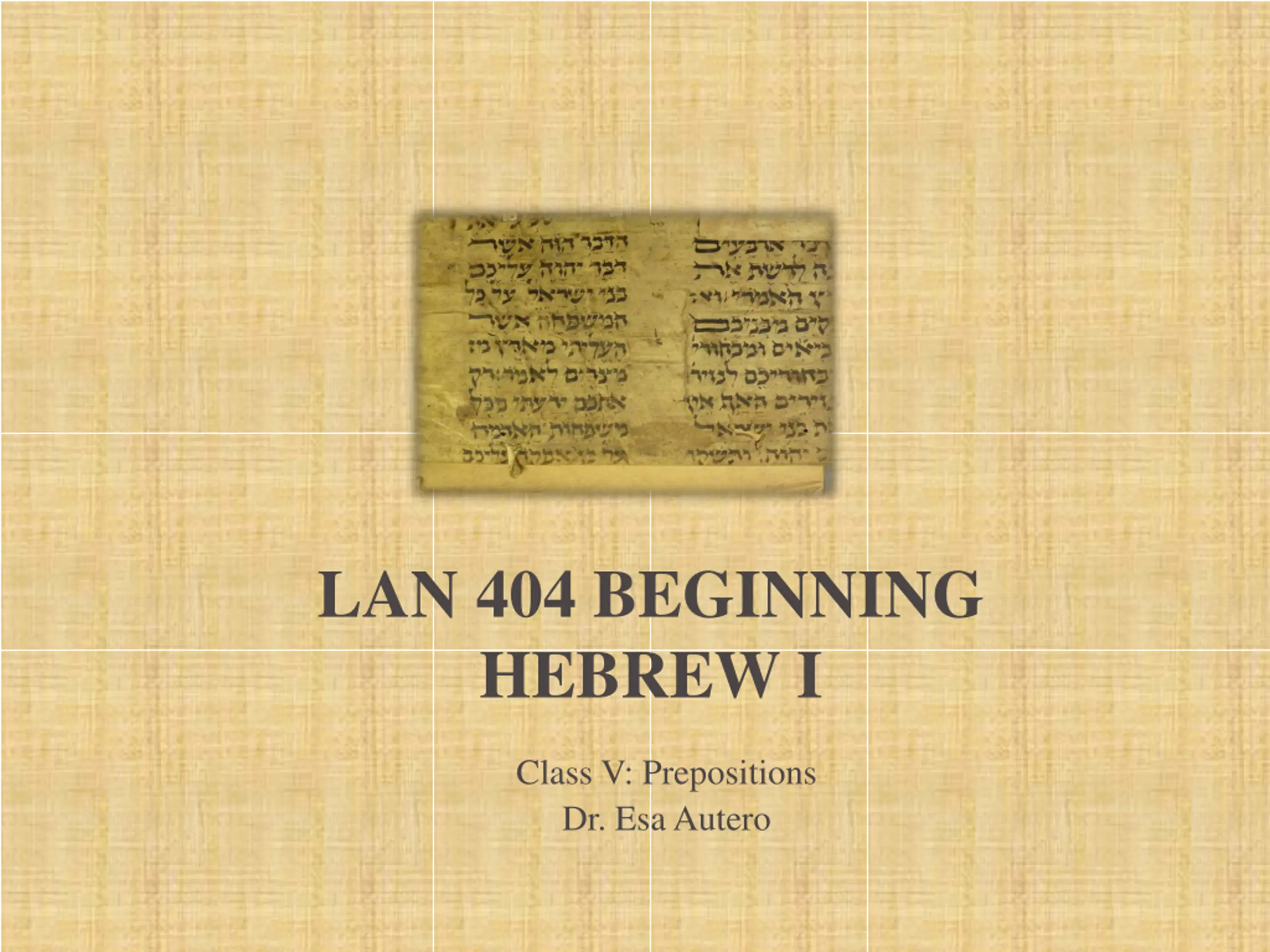 LAN 404 BEGINNING HEBREW I Class V: Prepositions Dr. Esa Autero