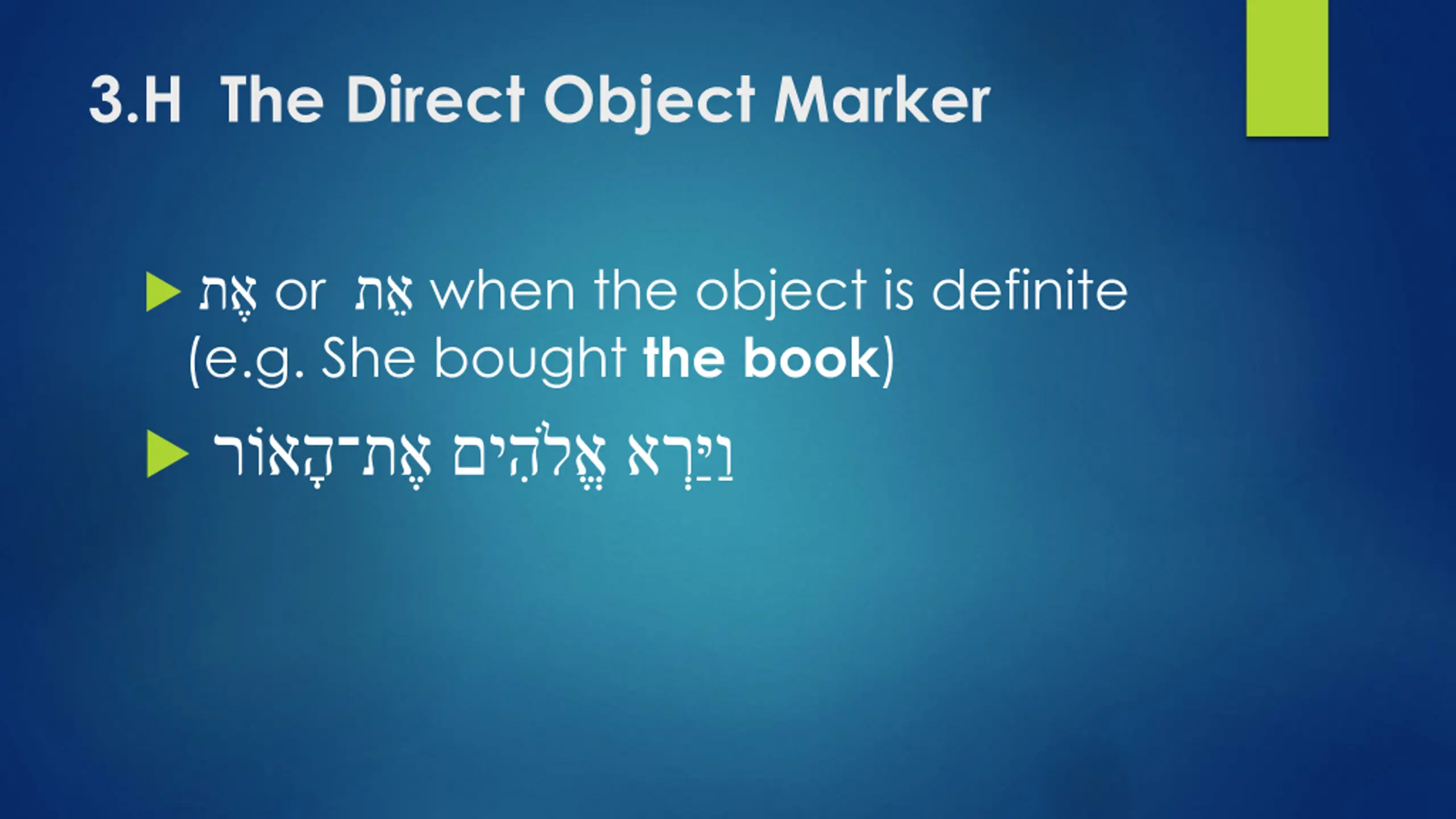 3.H The Direct Object Marker or when the object is definite (e.g. She bought the book)