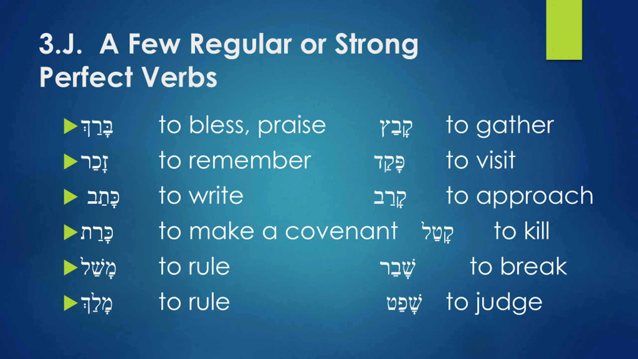 3.J. A Few Regular or Strong Perfect Verbs to bless, praise to remember to write to make a covenant to rule to rule to gather to visit to approach to kill to break to judge