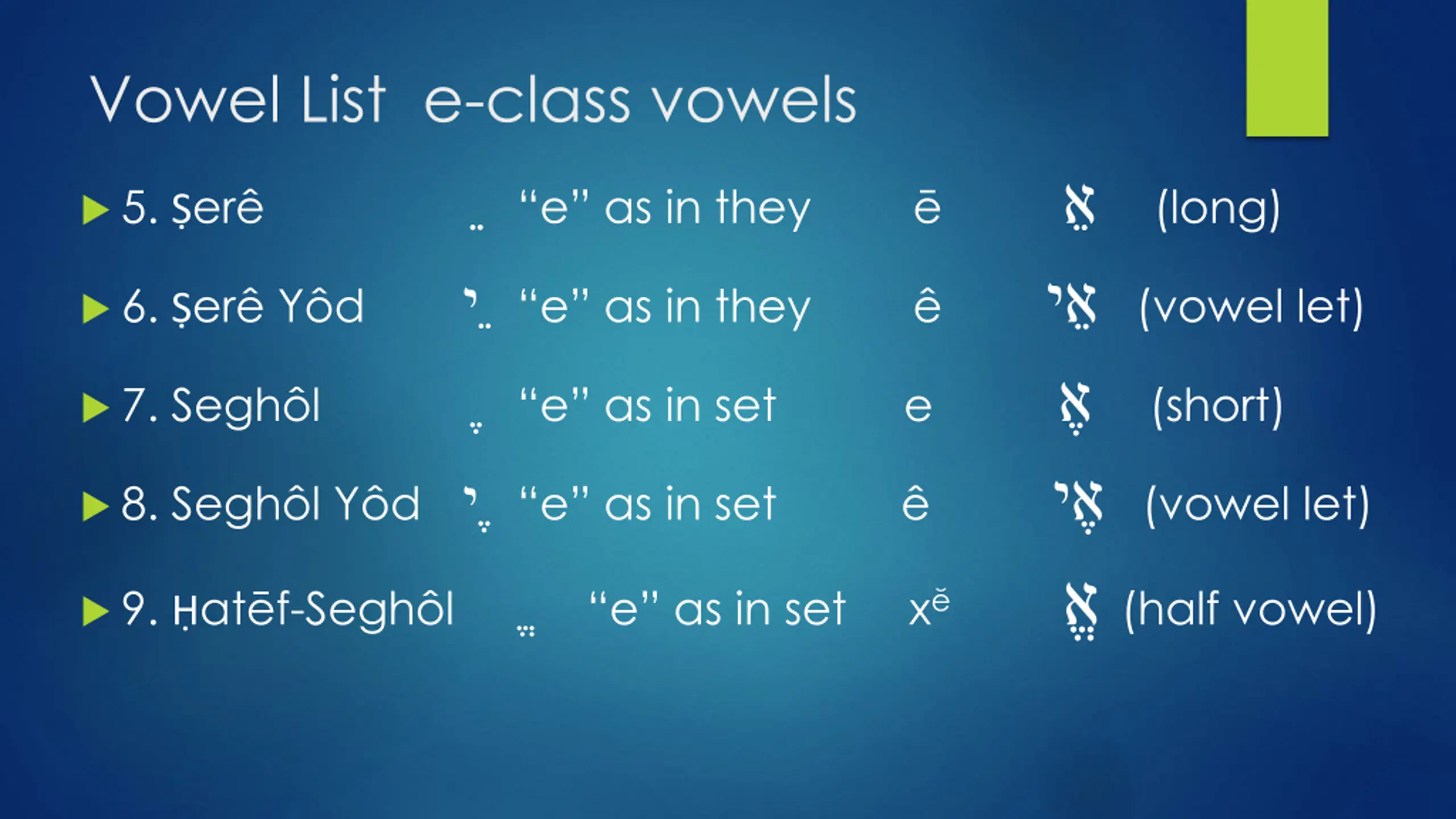 Vowel List e-class vowels 5. er e as in they (long) (vowel let) (short) (vowel let) (half vowel) e as in they 6. er Y d 7. Segh l e as in set e 8. Segh l Y d e as in set 9. at f-Segh l e as in set x