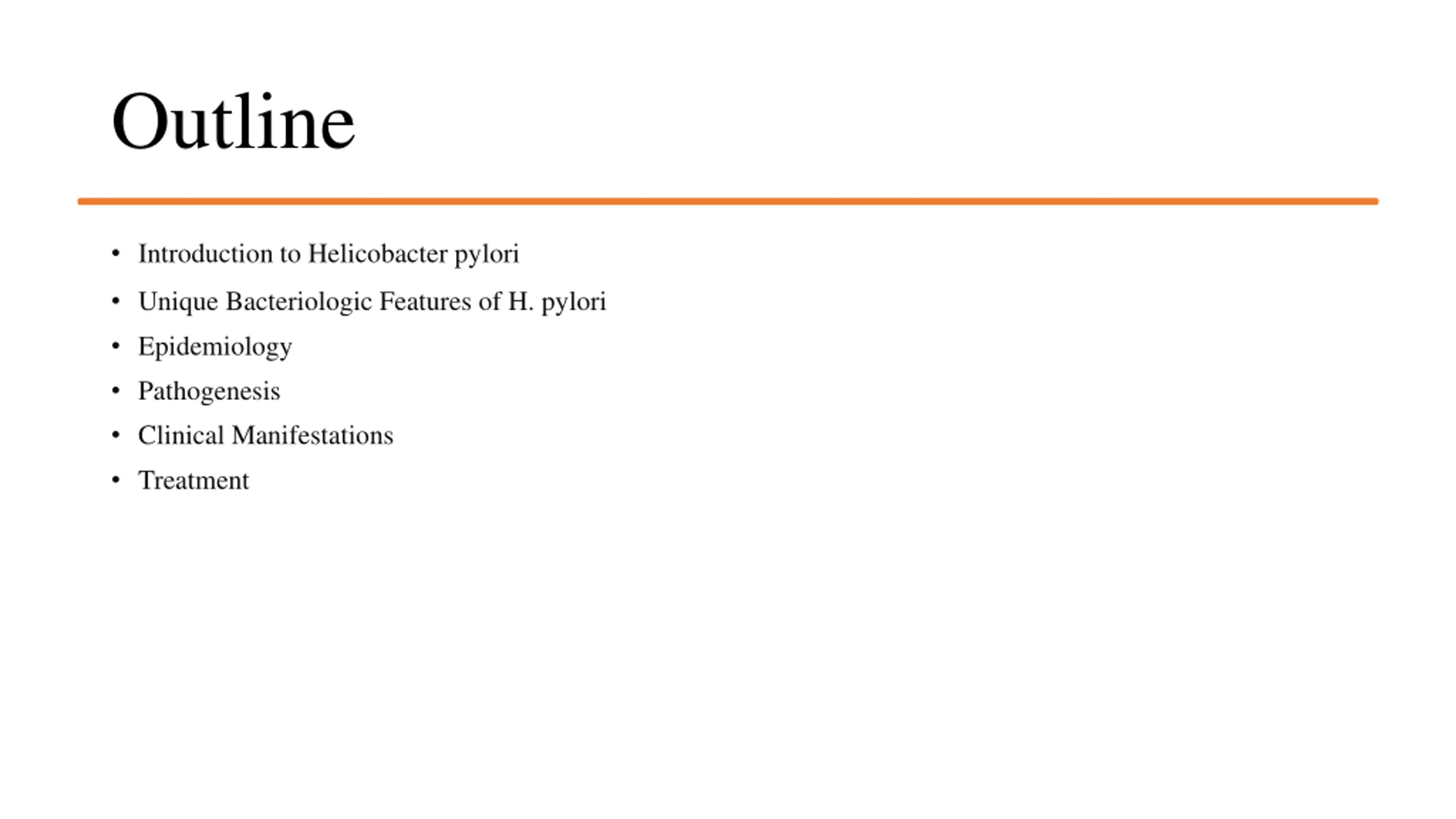 Outline Introduction to Helicobacter pylori Unique Bacteriologic Features of H. pylori Epidemiology Pathogenesis Clinical Manifestations Treatment