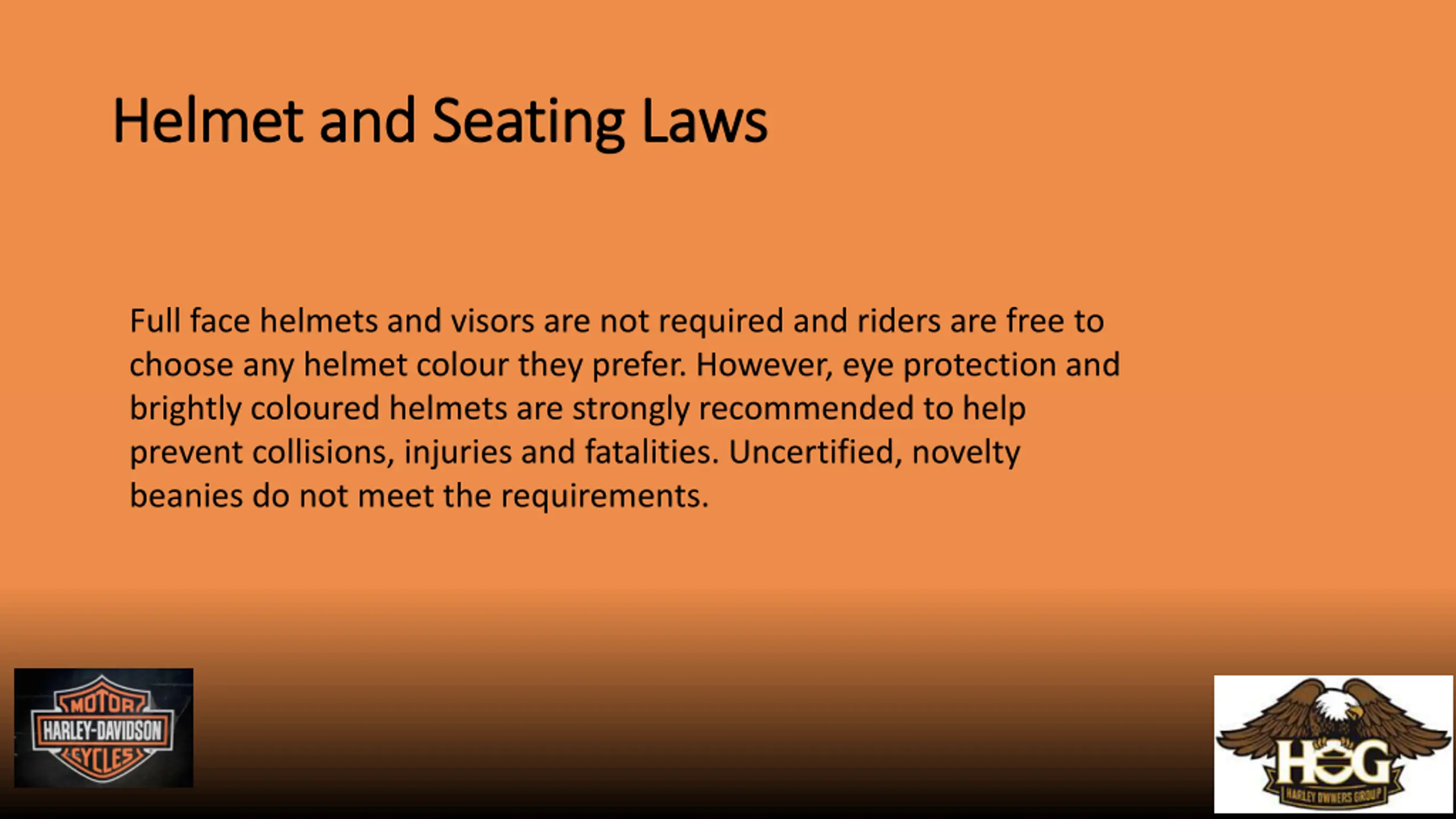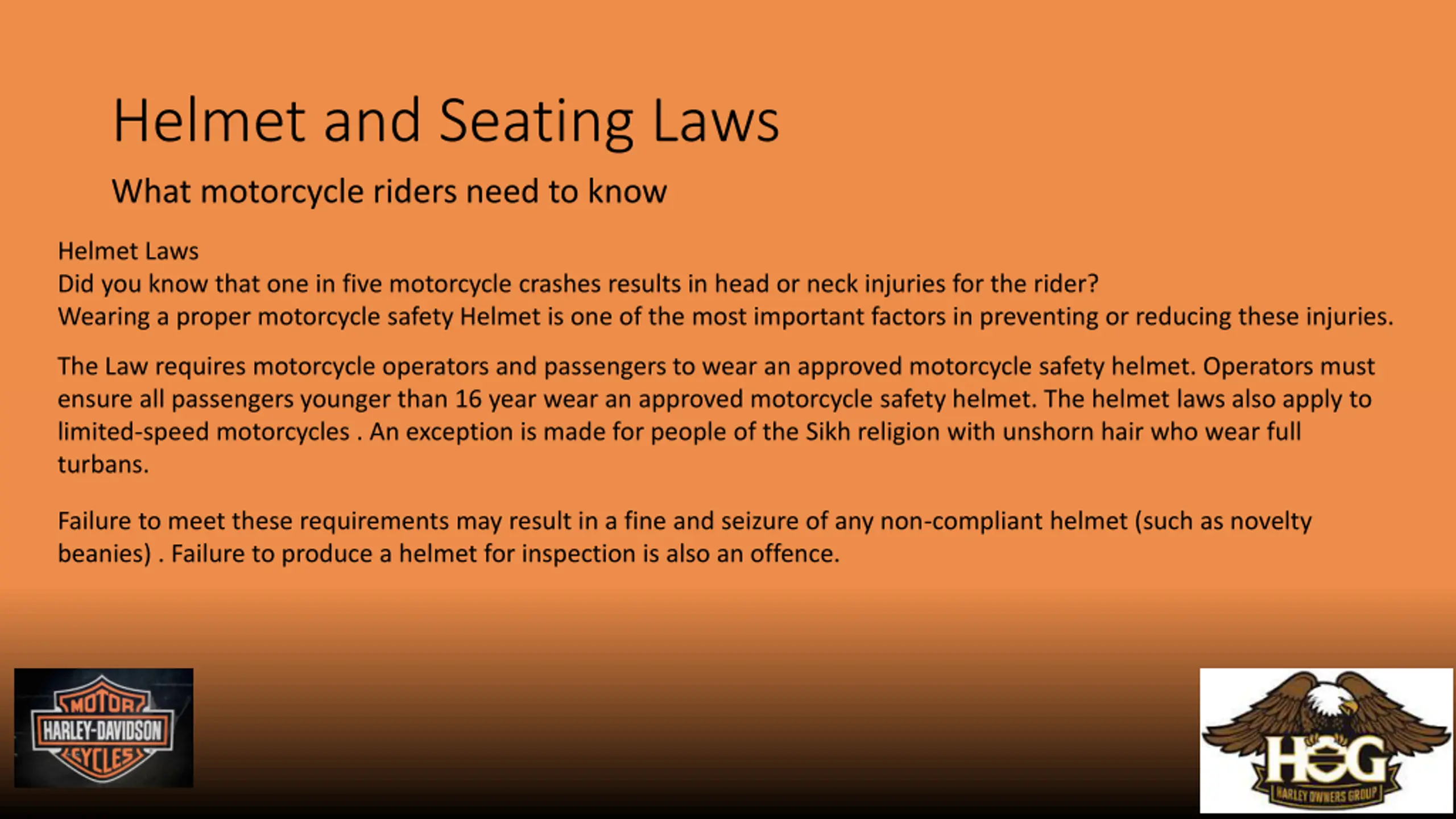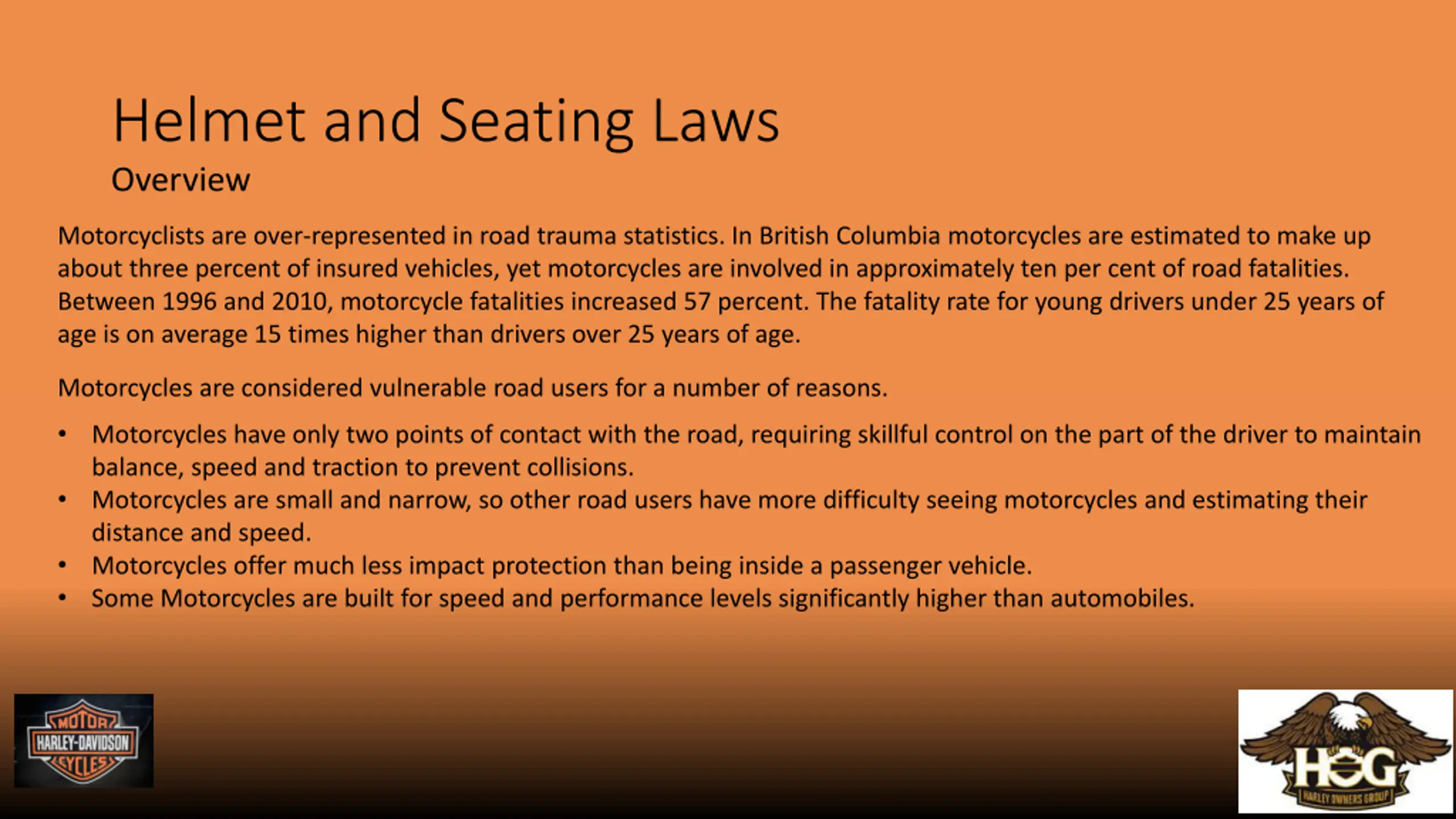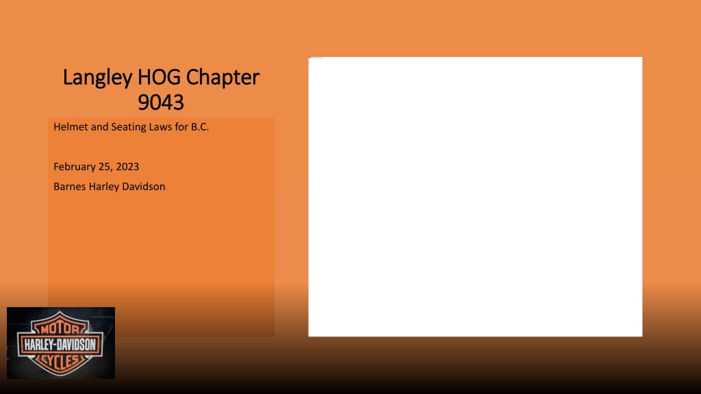 Langley HOG Chapter Langley HOG Chapter 9043 9043 Helmet and Seating Laws for B.C. February 25, 2023 Barnes Harley Davidson