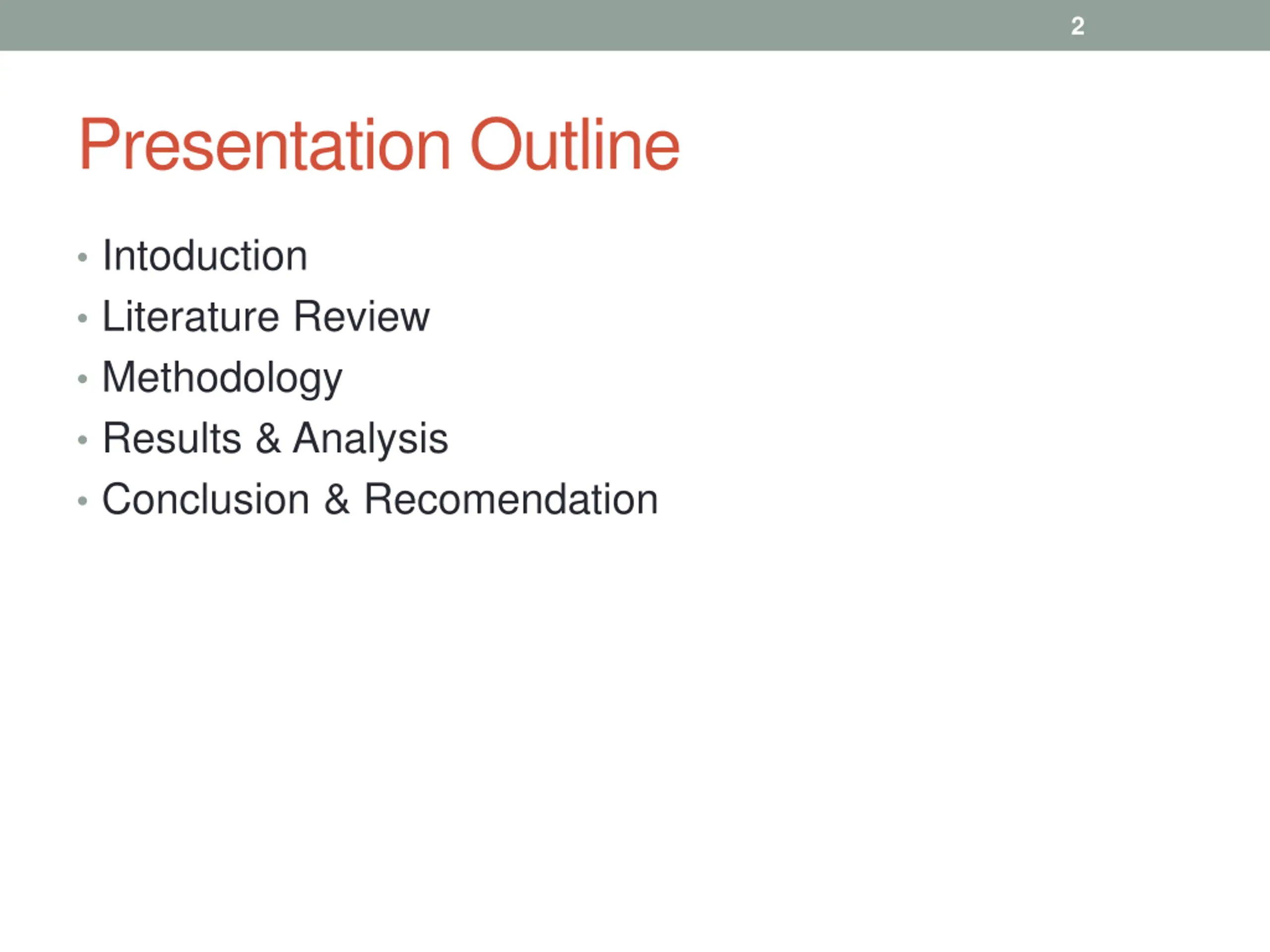 2 Presentation Outline Intoduction Literature Review Methodology Results & Analysis Conclusion & Recomendation