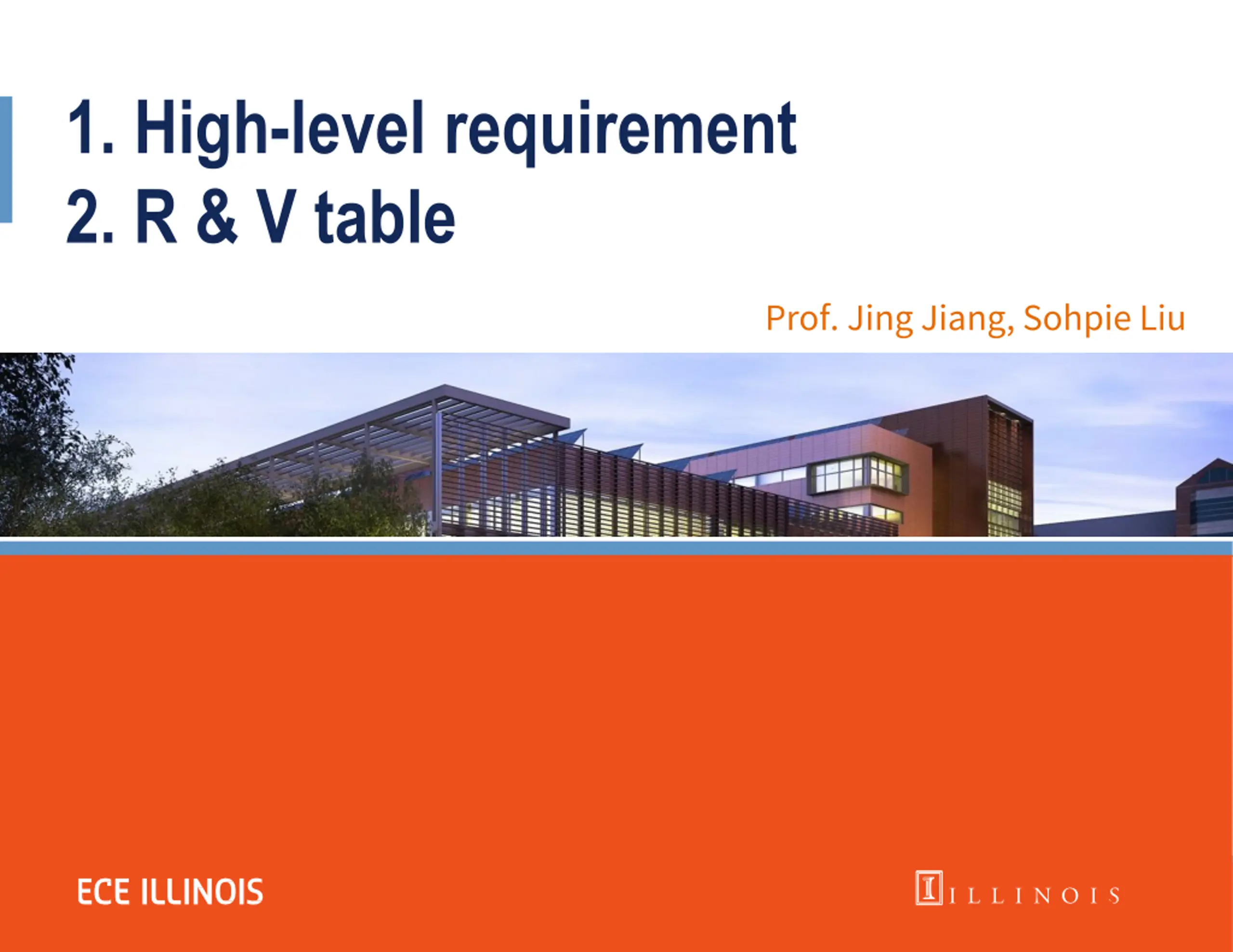 1. High-level requirement 2. R & V table Prof. JingJiang, SohpieLiu