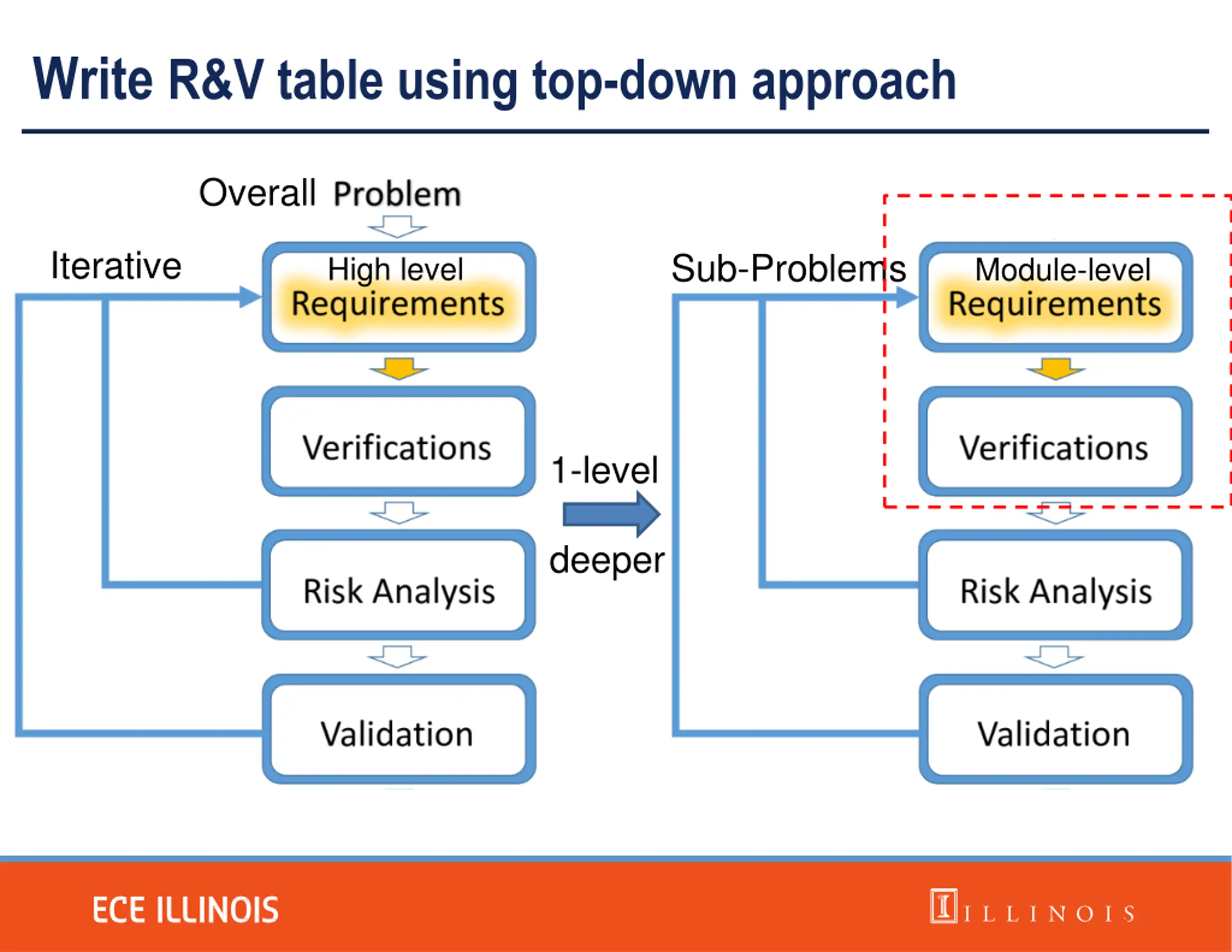 Write R&V table using top-down approach Overall Iterative Sub-Problems High level Module-level 1-level deeper
