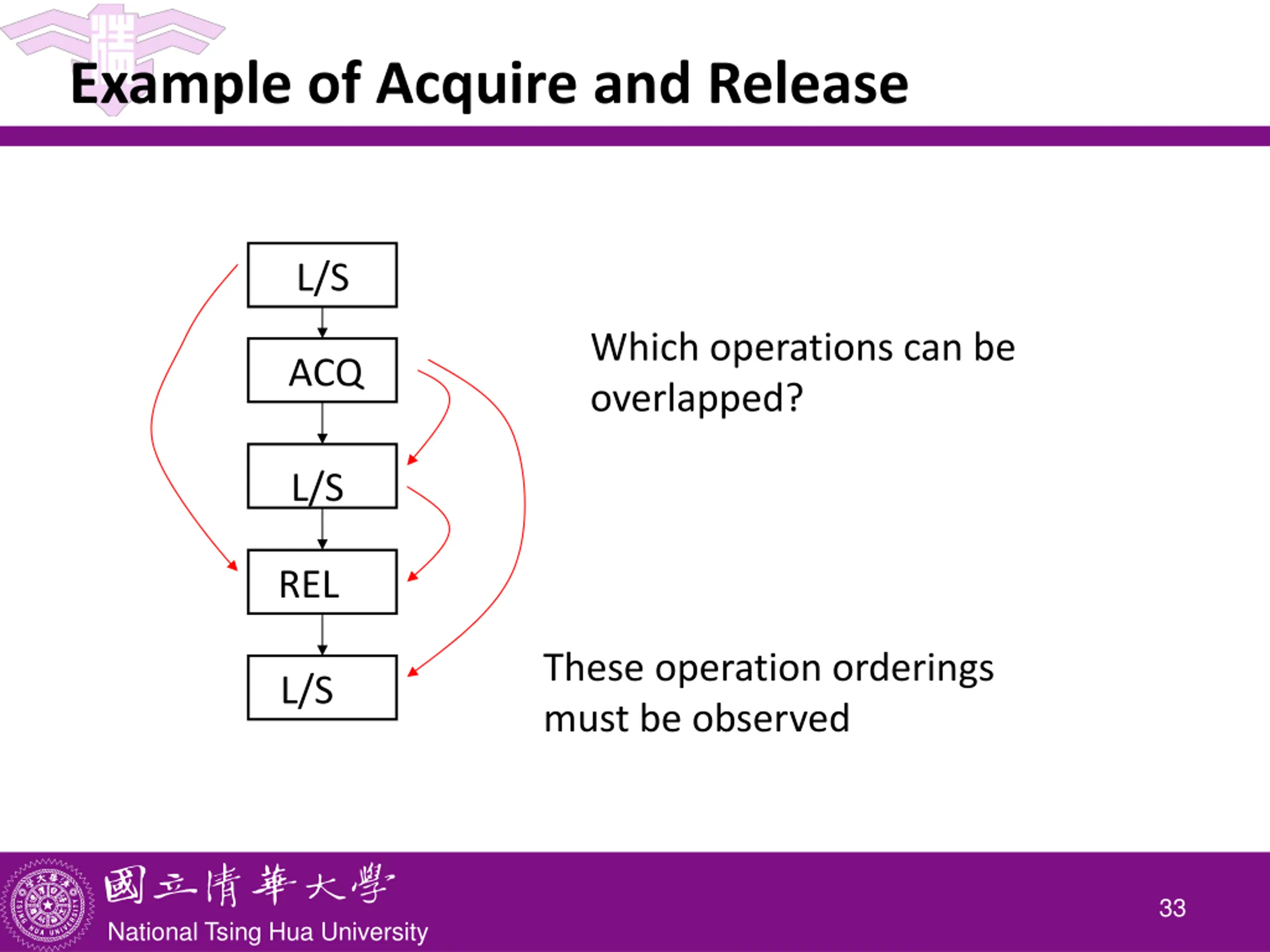 Example of Acquire and Release L/S Which operations can be overlapped? ACQ L/S REL These operation orderings must be observed L/S 33 National Tsing Hua University
