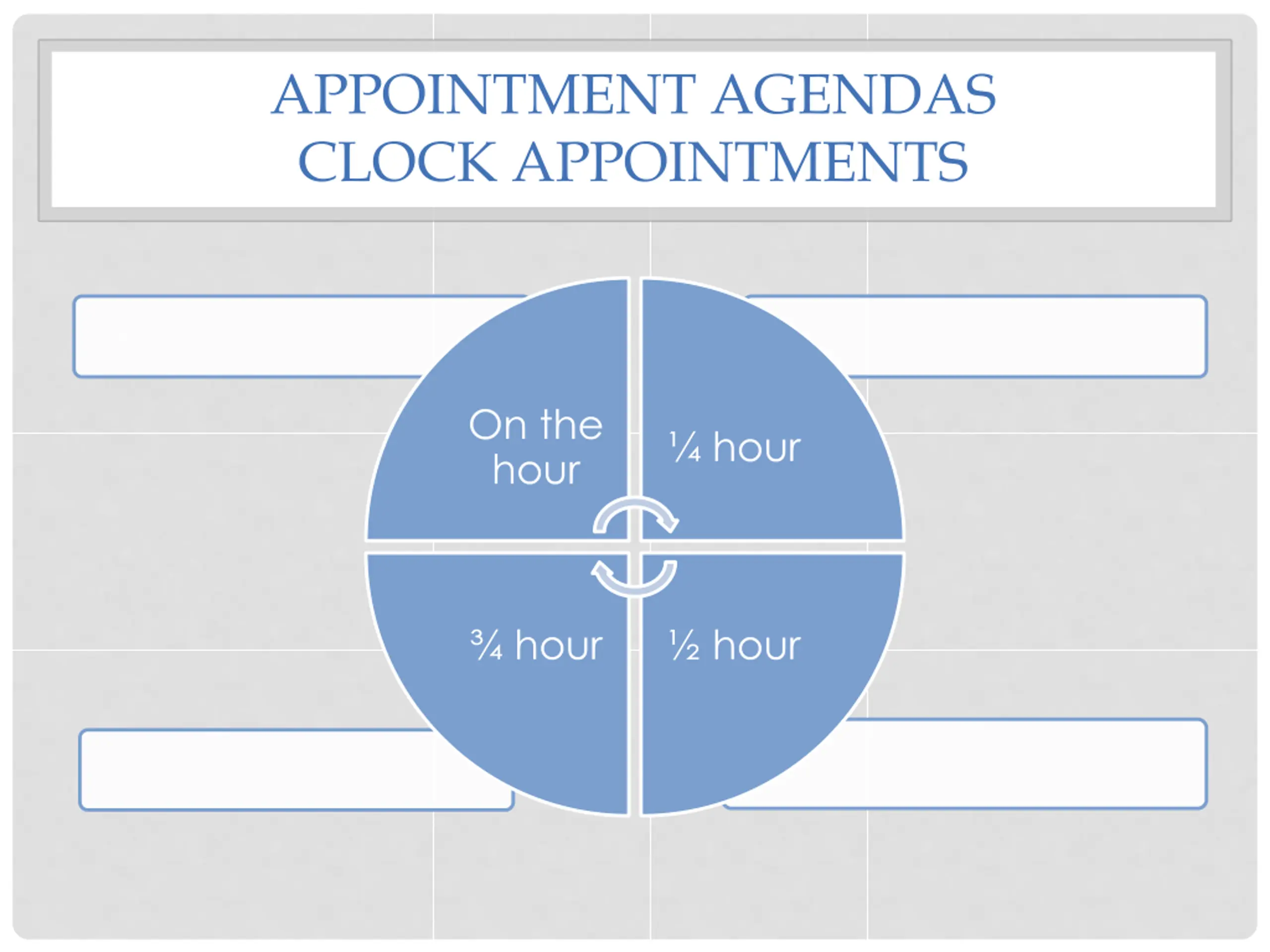 APPOINTMENT AGENDAS CLOCK APPOINTMENTS On the hour hour hour hour