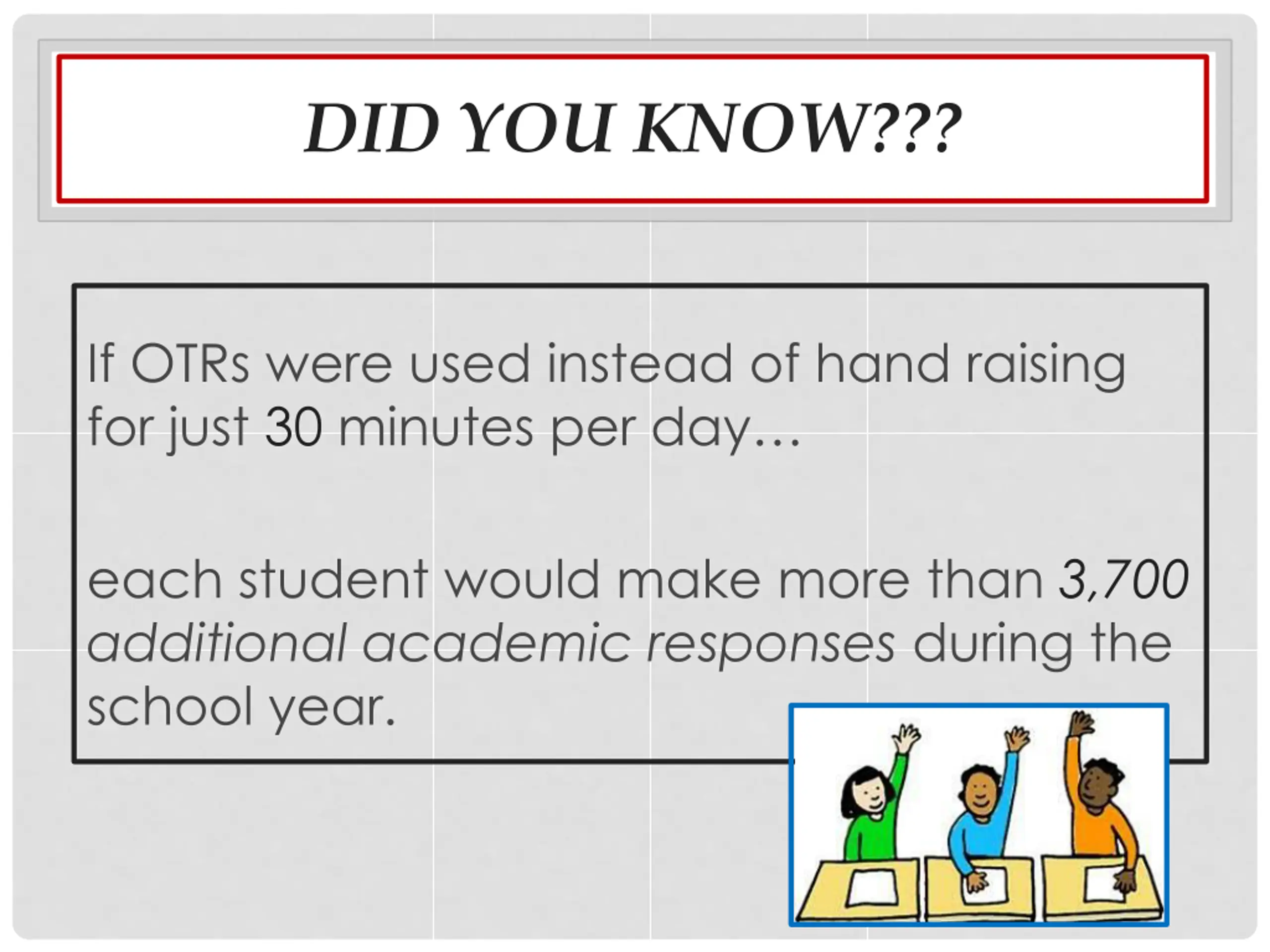 DID YOU KNOW??? If OTRs were used instead of hand raising for just 30 minutes per day each student would make more than 3,700 additional academic responses during the school year.