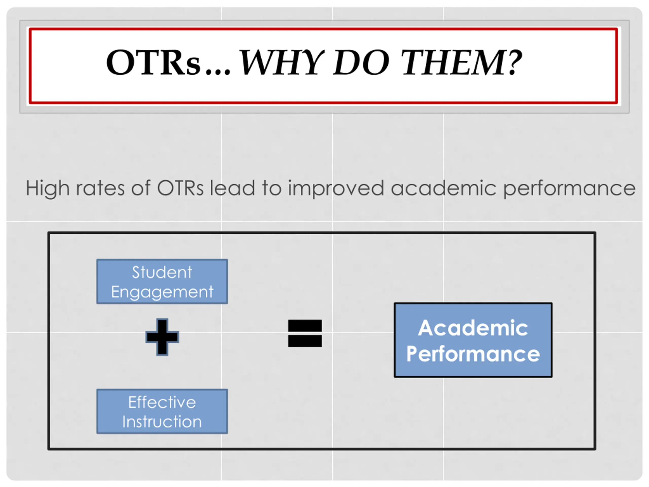 OTRsWHY DO THEM? High rates of OTRs lead to improved academic performance Student Engagement Academic Performance Effective Instruction