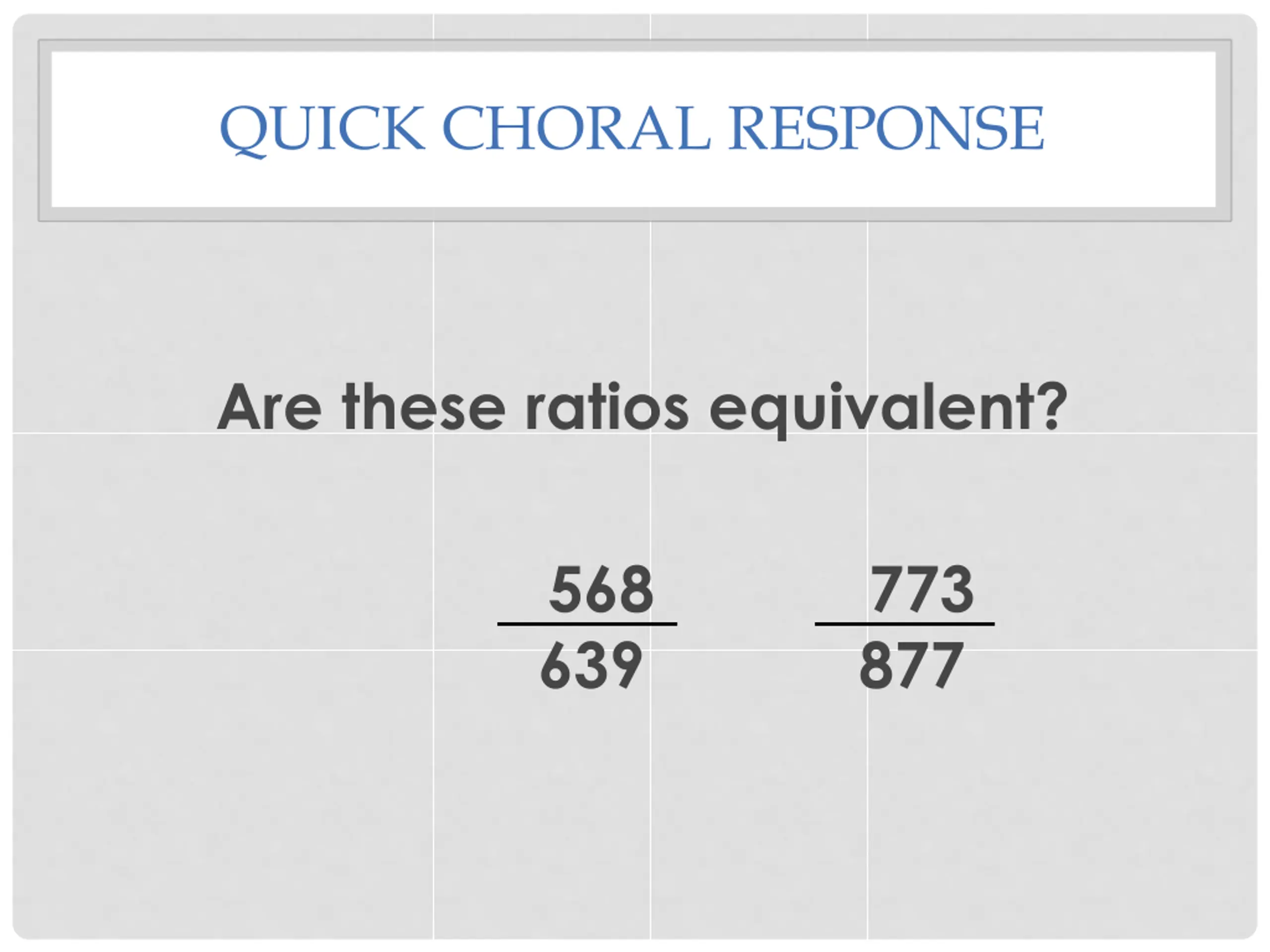 QUICK CHORAL RESPONSE Are these ratios equivalent? 568 773 639 877