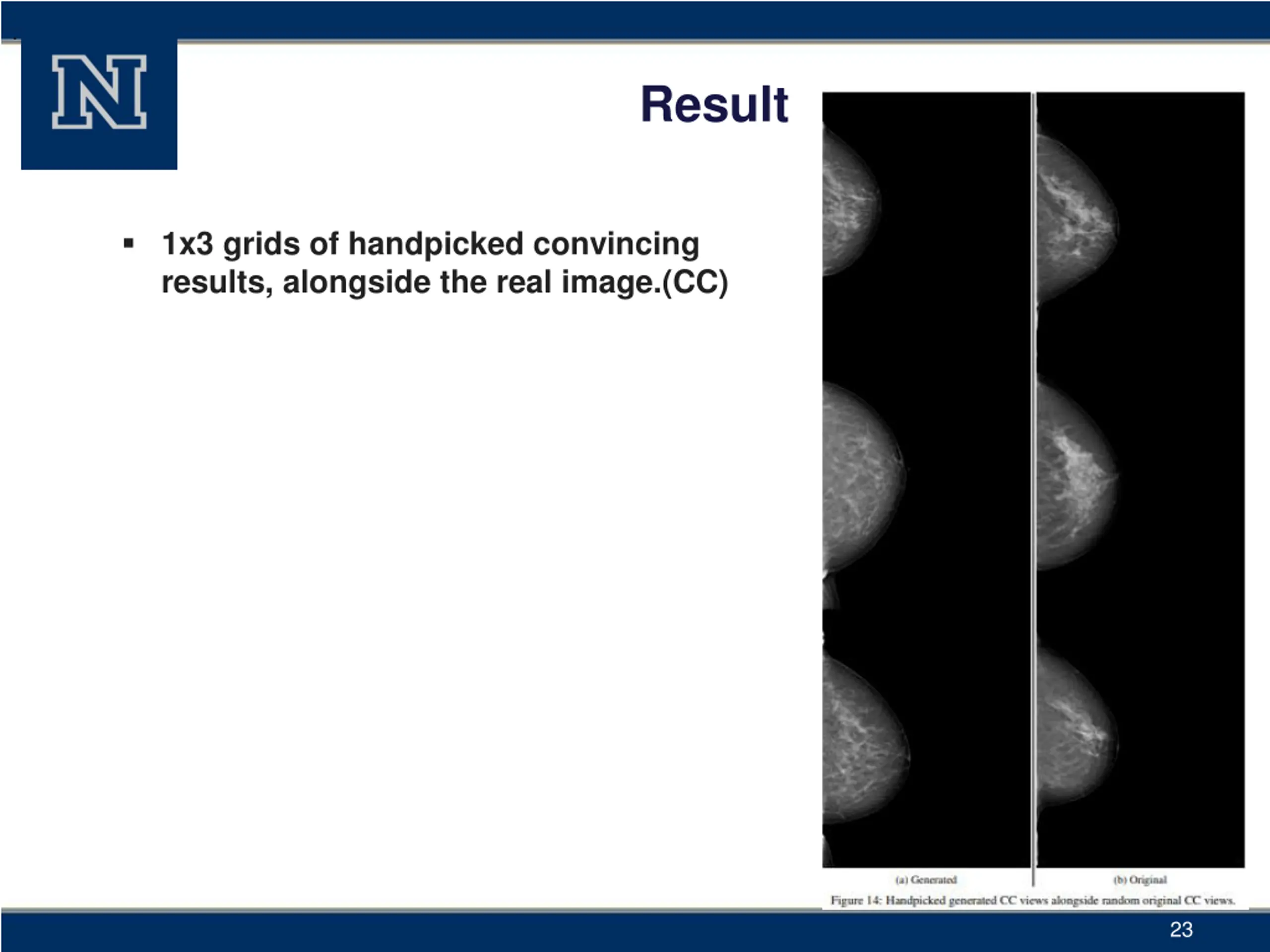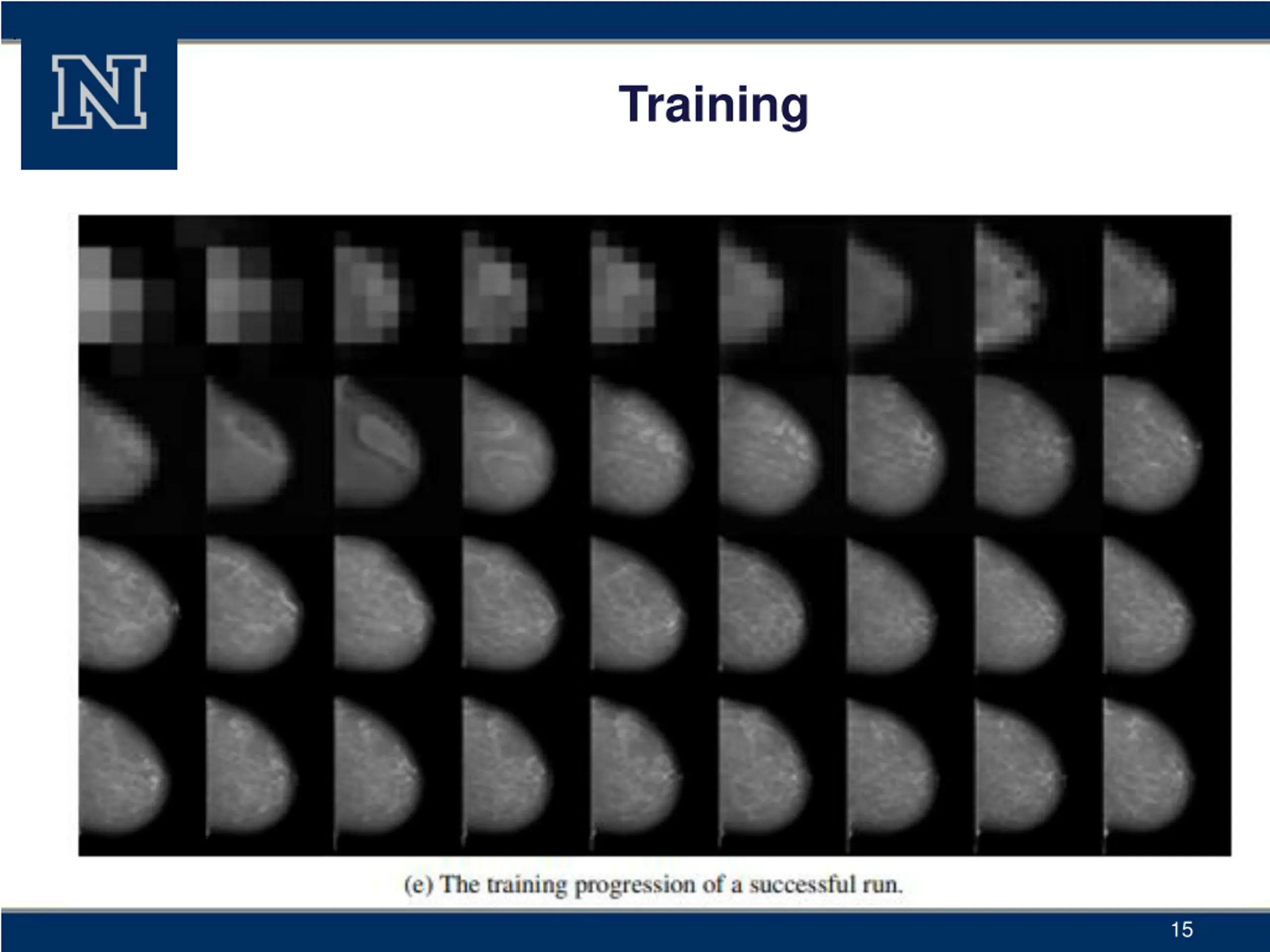 . Conclusion The proposed approach was successful in generating highly realistic, high-resolution synthetic mammograms using a progressively trained generative adversarial network. This study managed to overcome the underlying instabilities inherent in training such adversarial models and was able to generate images of higher resolution. (1280x1024 pixels) 32