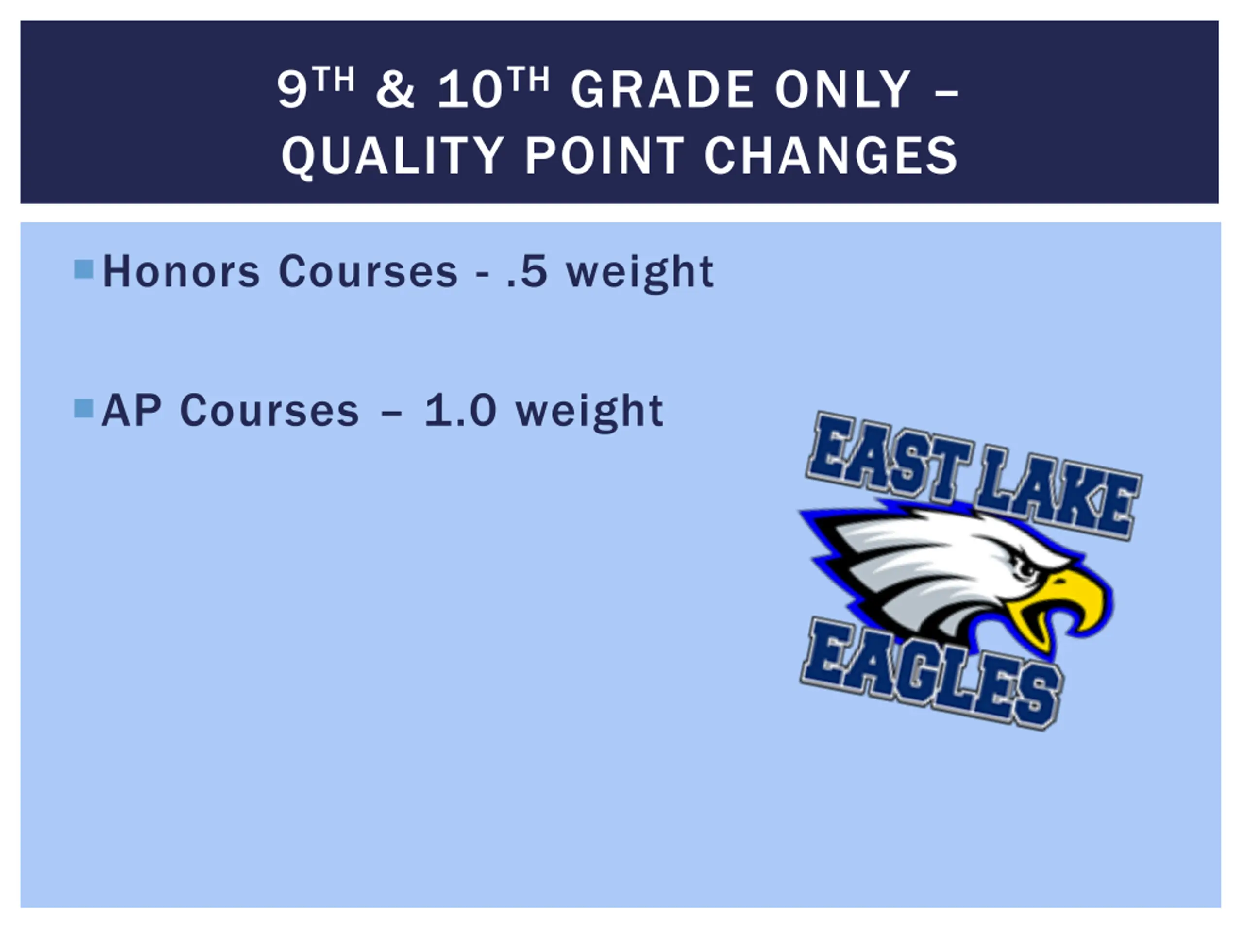 9TH& 10THGRADE ONLY QUALITY POINT CHANGES Honors Courses - .5 weight AP Courses 1.0 weight