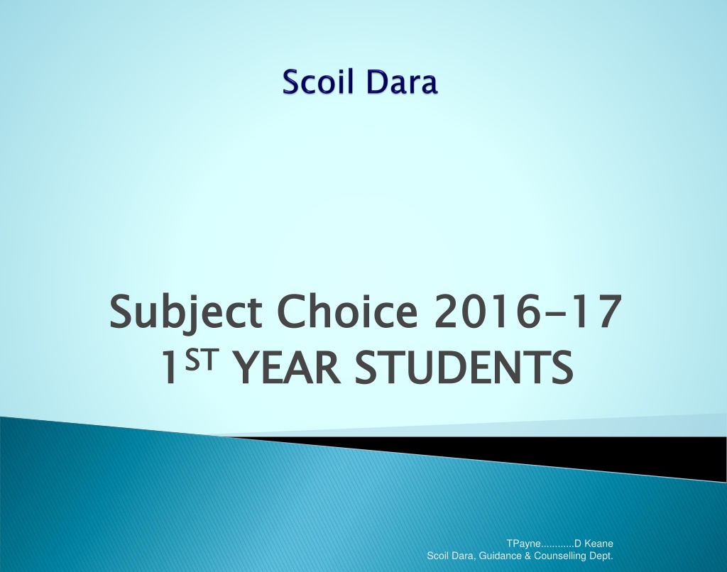 Subject Choice 2016 1 1ST Subject Choice 2016- -17 STYEAR STUDENTS 17 YEAR STUDENTS TPayne............D Keane Scoil Dara, Guidance & Counselling Dept.